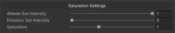 饱和度设置允许您在所有其他效果计算完毕后,调整材质的基色和/或自发光的饱和度。这有助于将大量资产统一到期望的风格和视觉效果,或无需依赖昂贵的后期处理就能创造出有趣的视觉效果。