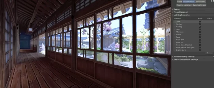 在光线追踪技术上,Unity 6通过紧密集成微软的DXR(DirectX Raytracing)和Vulkan的Ray Tracing扩展,不仅支持表面反射和阴影的物理精确计算,还深化了对全局光照(Global Illumination, GI)的实现。新引入的RTGI(Real-Time Global Illumination)结合了光线追踪与传统GI算法的优点,利用光线追踪加速结构(Acceleration Structures)实时计算间接光照,为场景带来前所未有的真实感和细腻的光影互动。