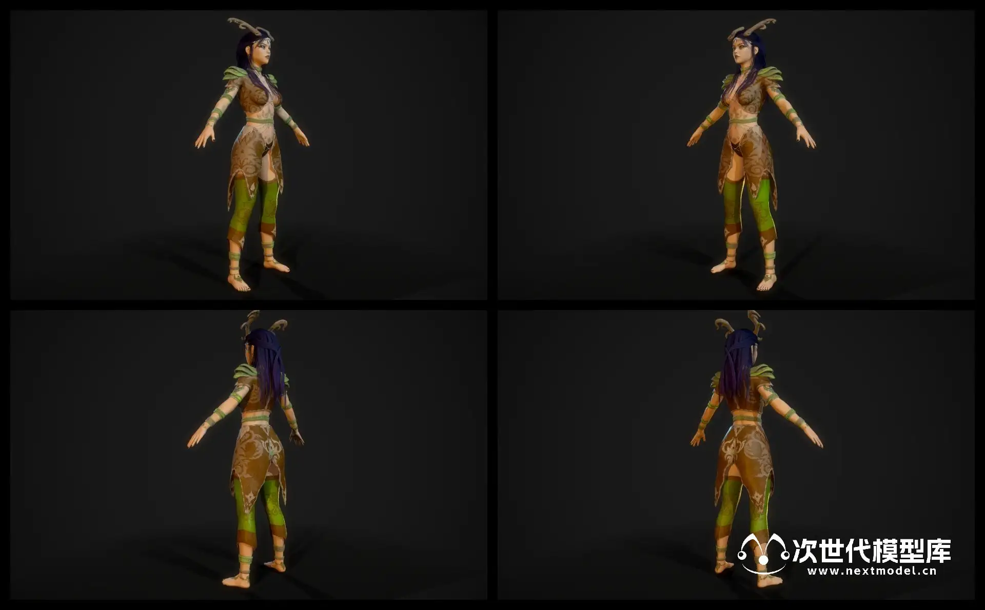 高品质的森林精灵女性德鲁伊游戏角色模型。该模型具备两种体型,一种是带内衣的体型,另一种是带衣服的体型。这两种体型均已进行骨骼装配,适合在游戏中使用。模型采用了Low Poly(低多边形)的设计风格,使其在游戏中具备良好的性能表现。同时,该模型还进行了绑定(rigged)操作,使其能够进行动作表现,并且已经准备好了PBR(物理渲染)纹理。