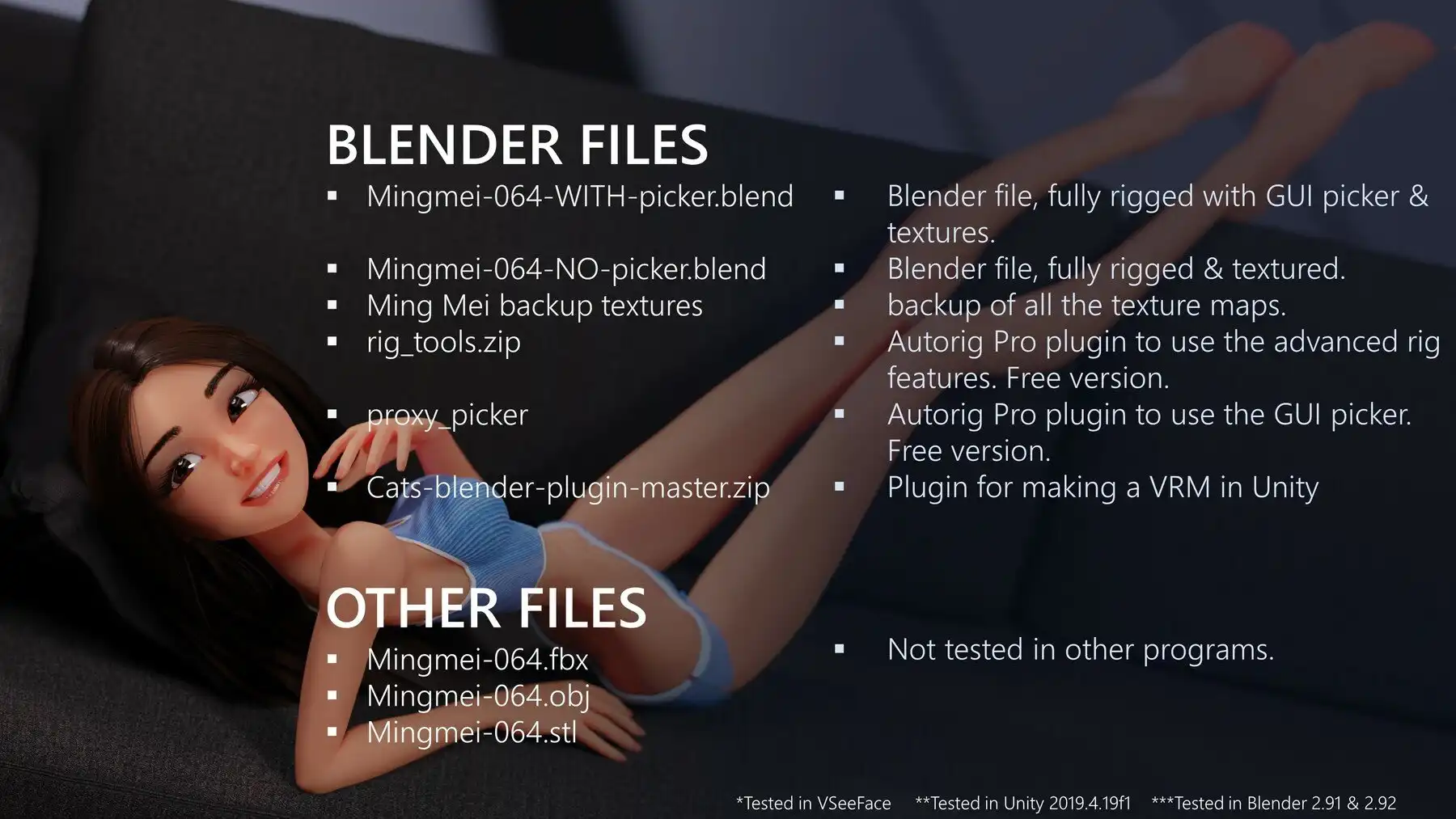 英文名称:Ming-Mei Rigged Character for Blender and Vtubing
