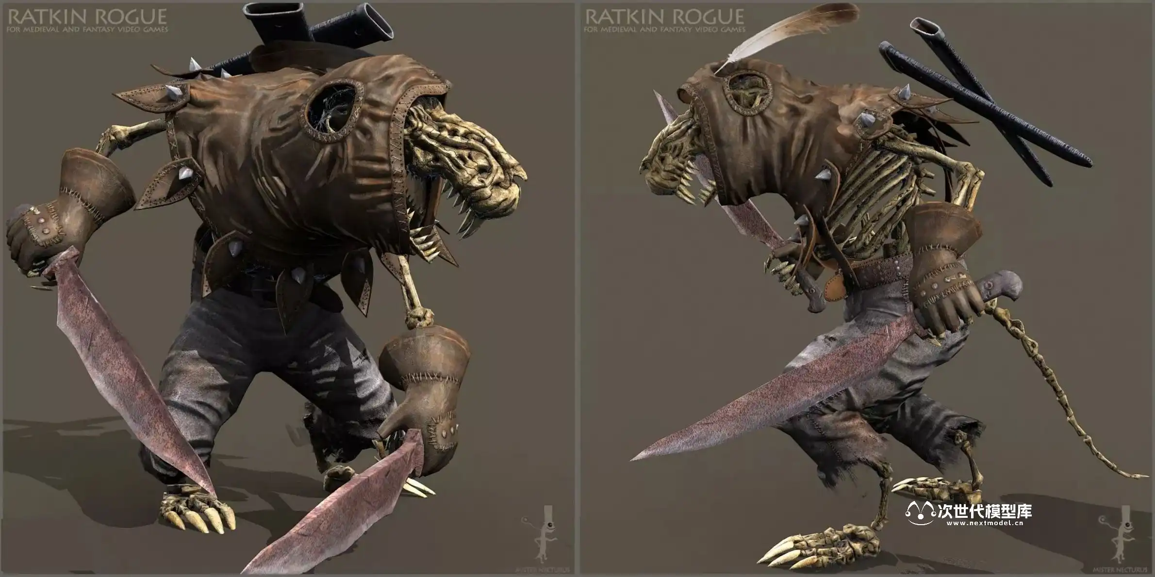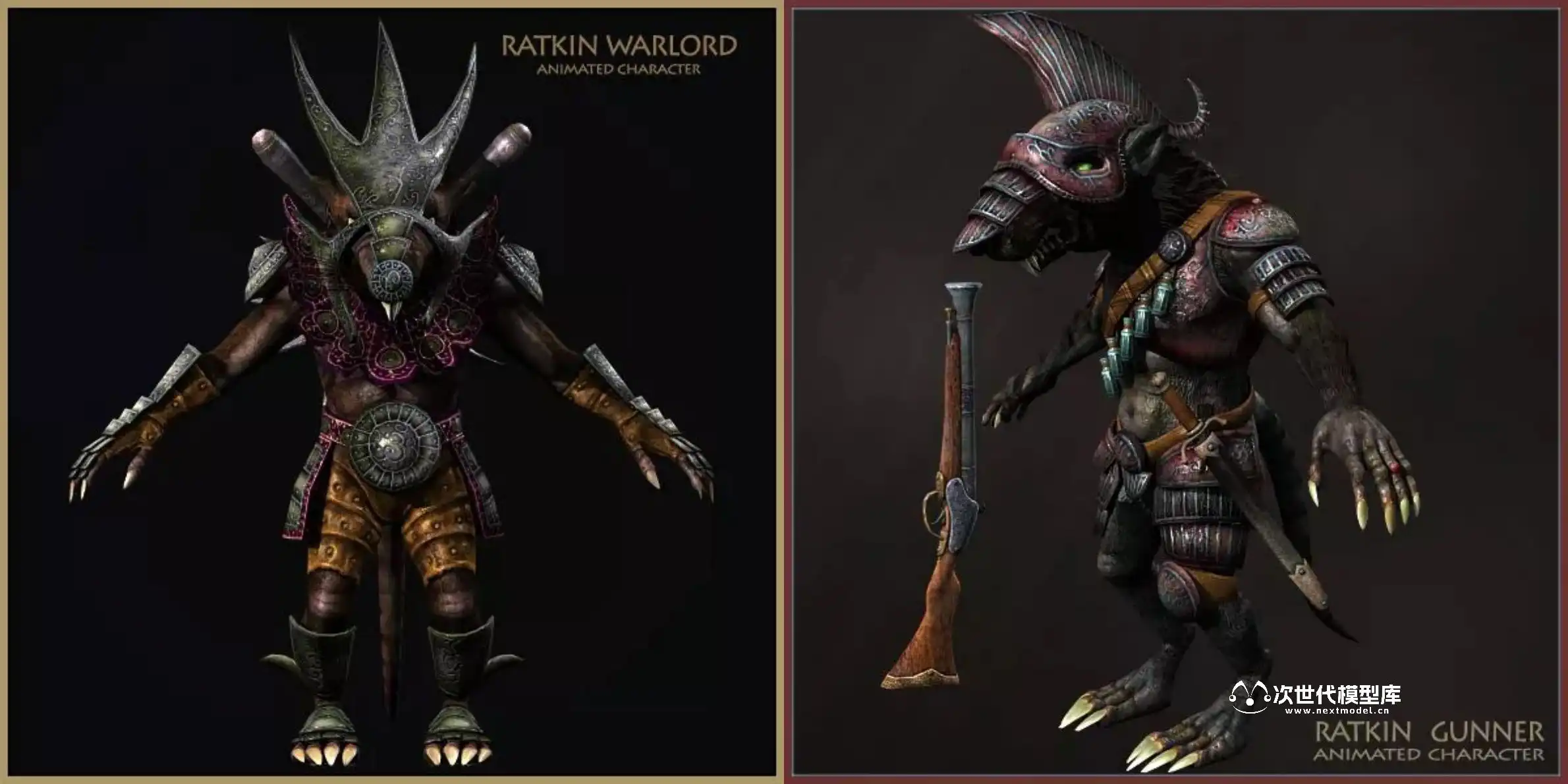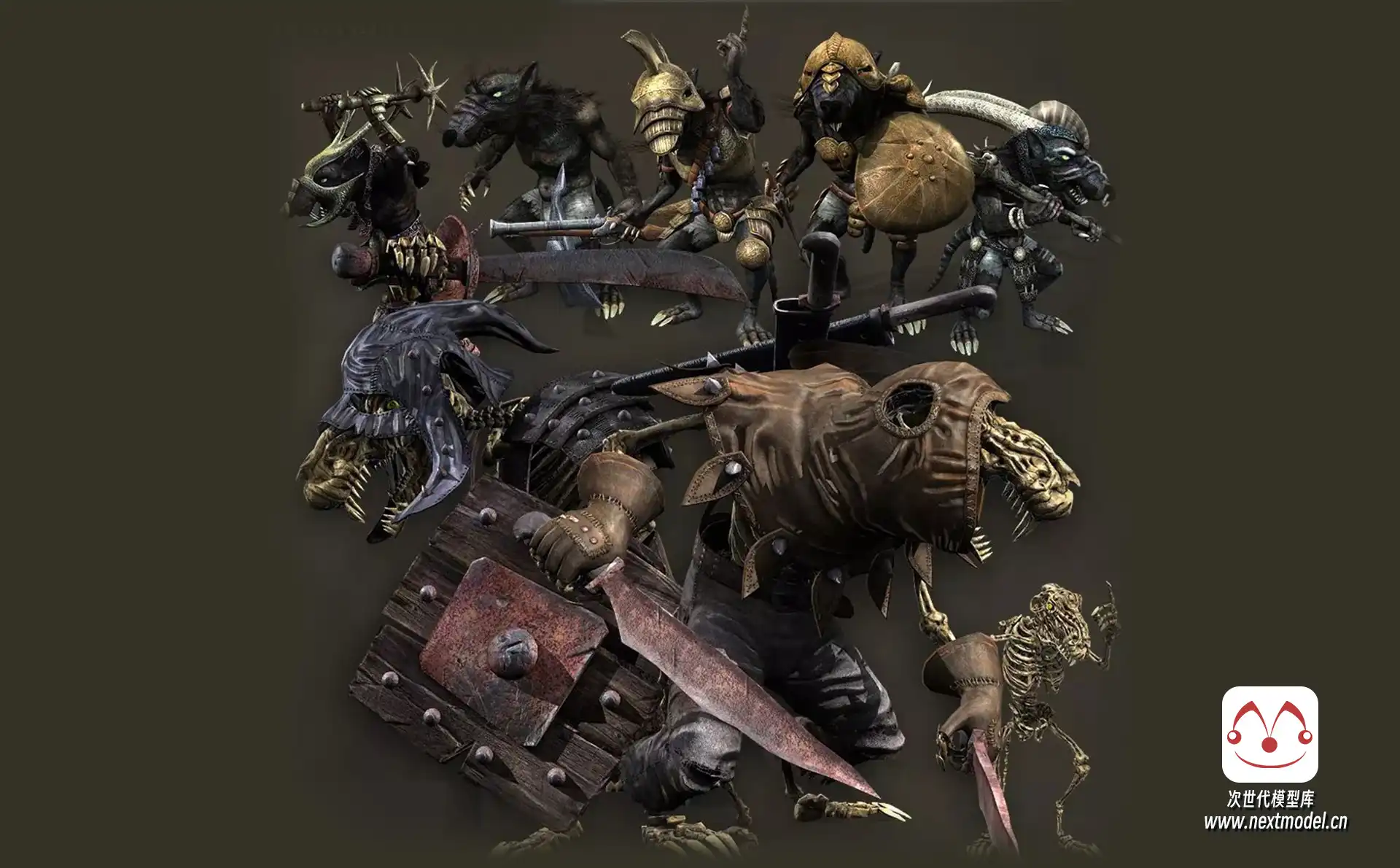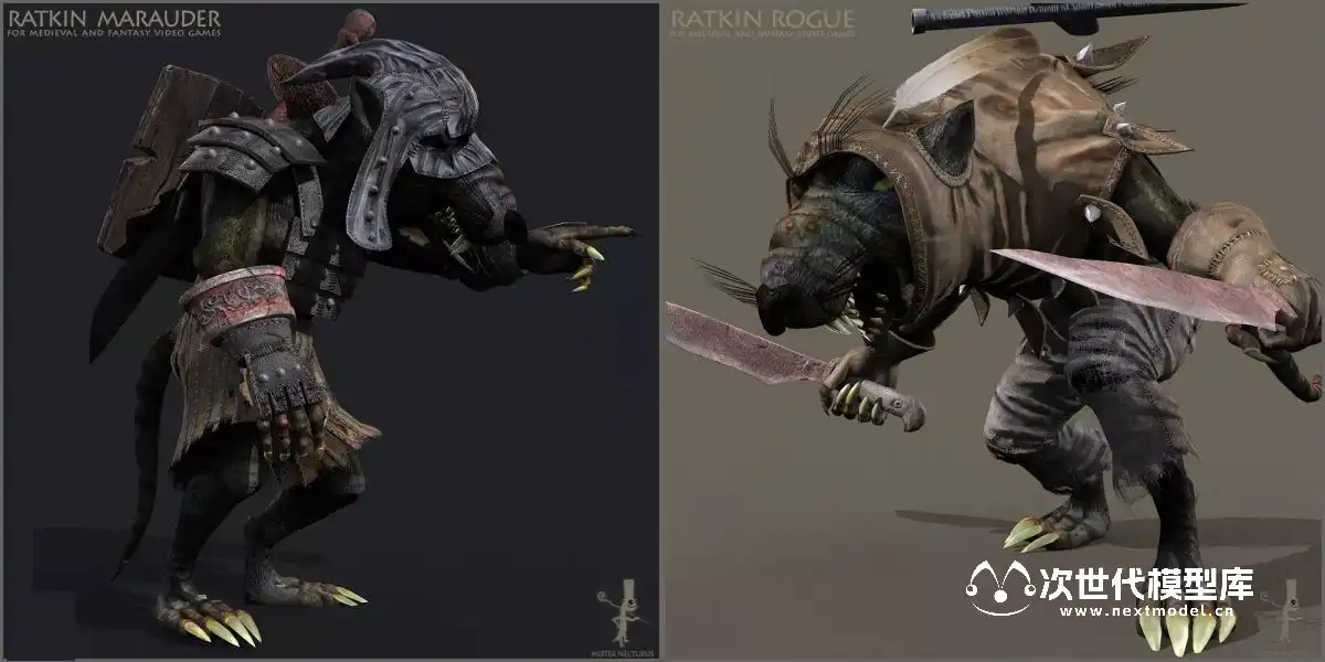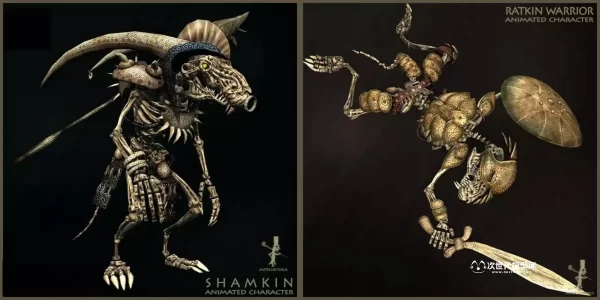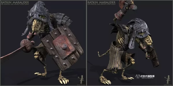 “Ratkins Army Pack”专为打造第一人称和第三人称游戏中邪恶鼠人军团而设计,包含8个独特的、全副武装且高度动画化的鼠人角色。每个角色均配备了武器与护甲,高精度模型拥有约11,000个面、21,000个三角形和11,000个顶点,同时提供优化的LOD版本(约3,000至6,000面、5,000至10,000个三角形和3,000至6,000个顶点),确保在不同性能需求下保持流畅体验。骨骼系统具备68至72根骨骼,确保动作流畅自然。