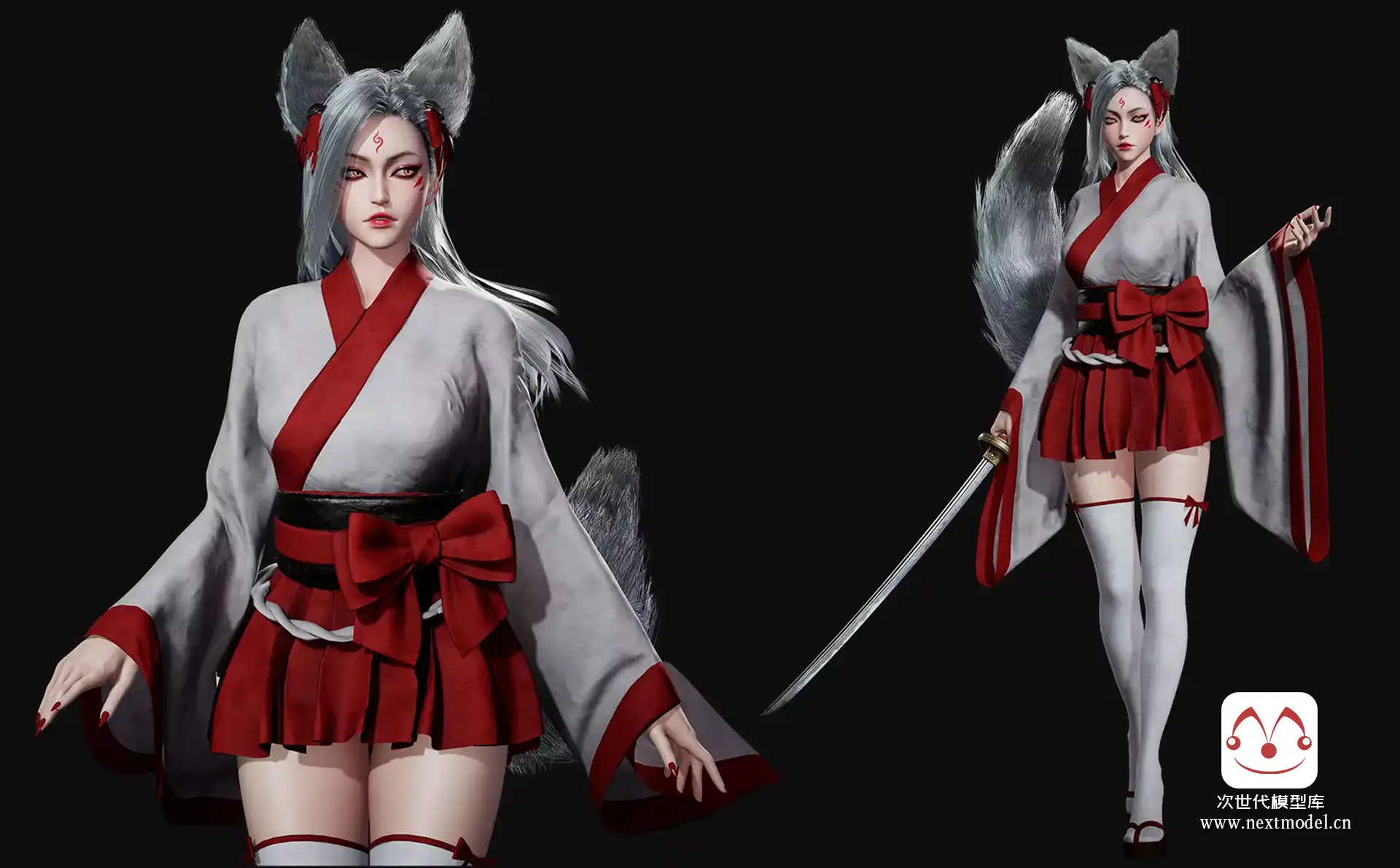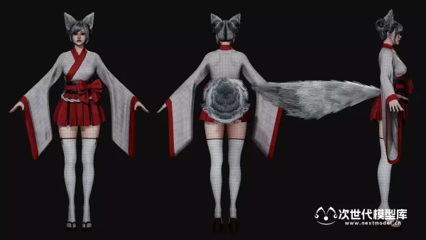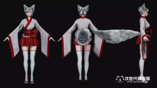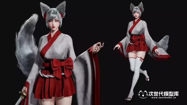 可爱美艳狐仙美女角色的3D模型,该模型采用模块化设计,并且具备PBR 4K纹理。该模型还提供了四种不同的发型选择,包括宽松、宽松刘海、发髻和刘海发髻。 这款狐仙美女角色的3D模型在设计上采用了模块化的方法,这意味着模型的各个组成部分可以独立制作和修改,从而提供了更大的灵活性和可定制性。这种设计方式使得模型的部件可以根据需要进行替换或重新组合,以满足不同项目的要求。