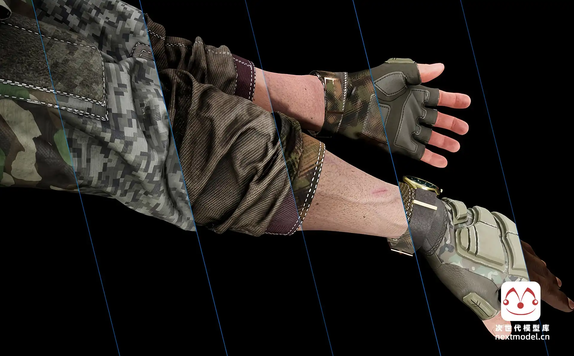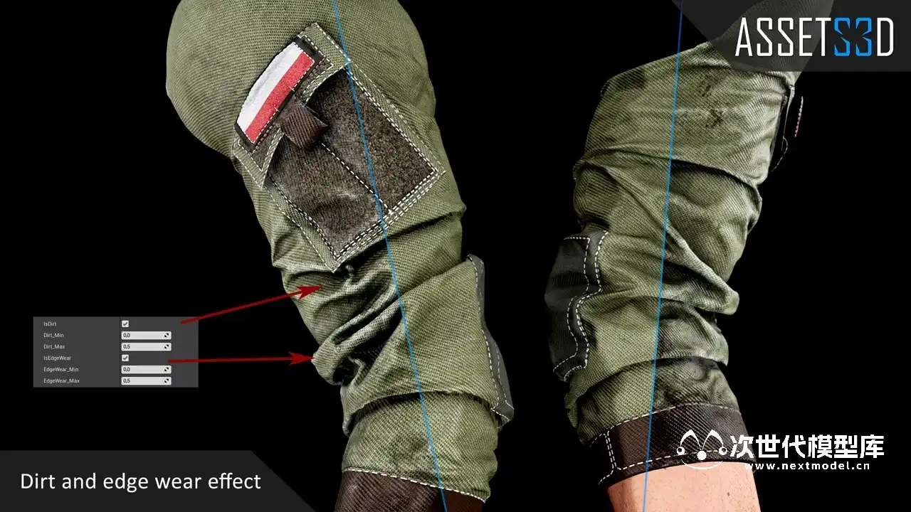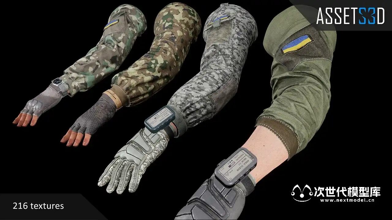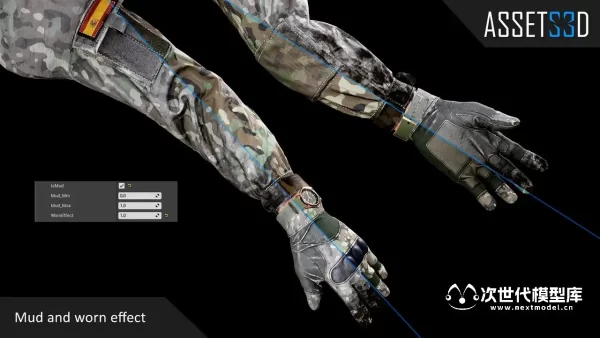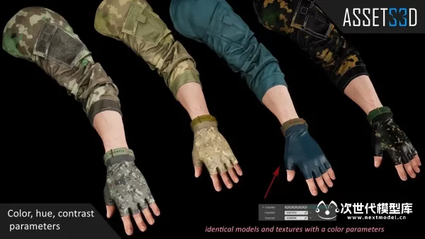 - 可更改3个身体部位(衬衫、手套、配件)的不同模型和材质。