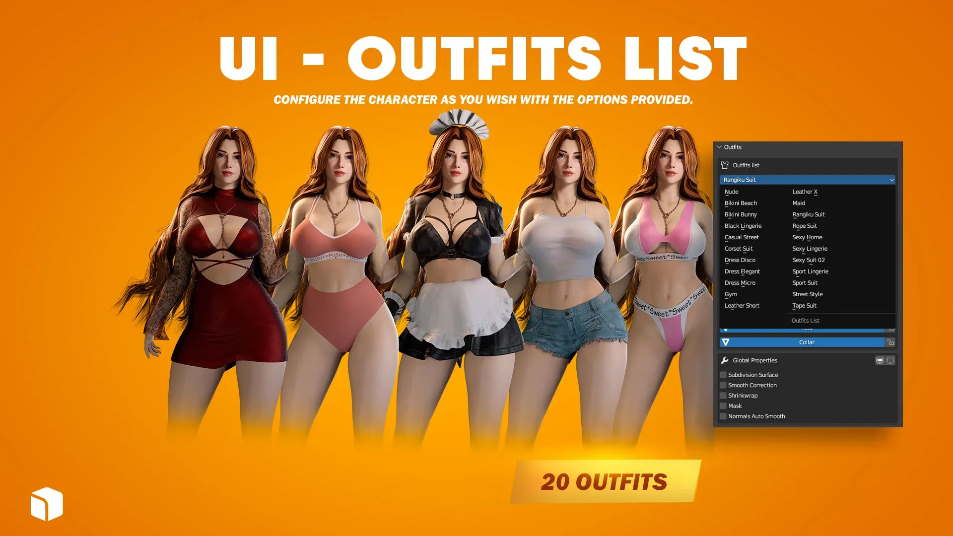 - 20套额外服装:包括日常服饰,可以自由组合搭配。