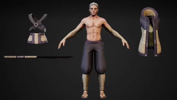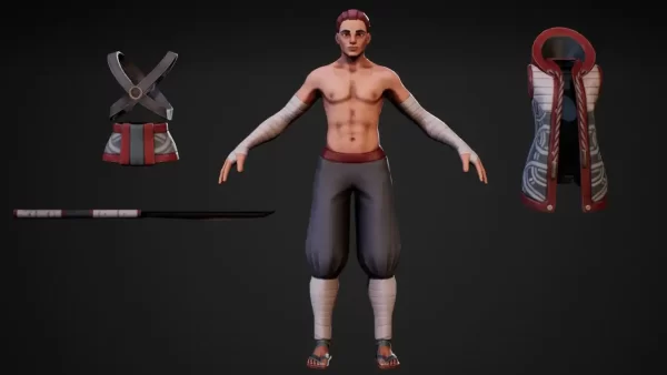 该角色已绑定19种动画,涵盖战斗、移动、跳跃等动作,具体包括:- 攻击动画(armed/unarmed)角色