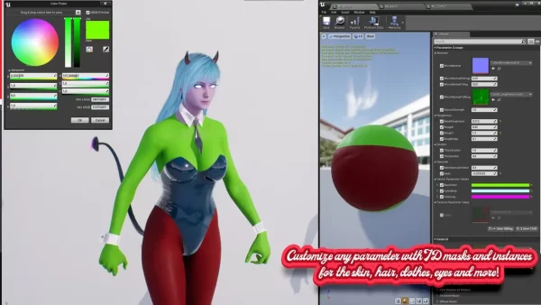 - 可通过ID遮罩实时调整肤色、眼睛颜色、头发与服装色调