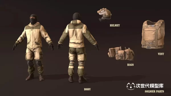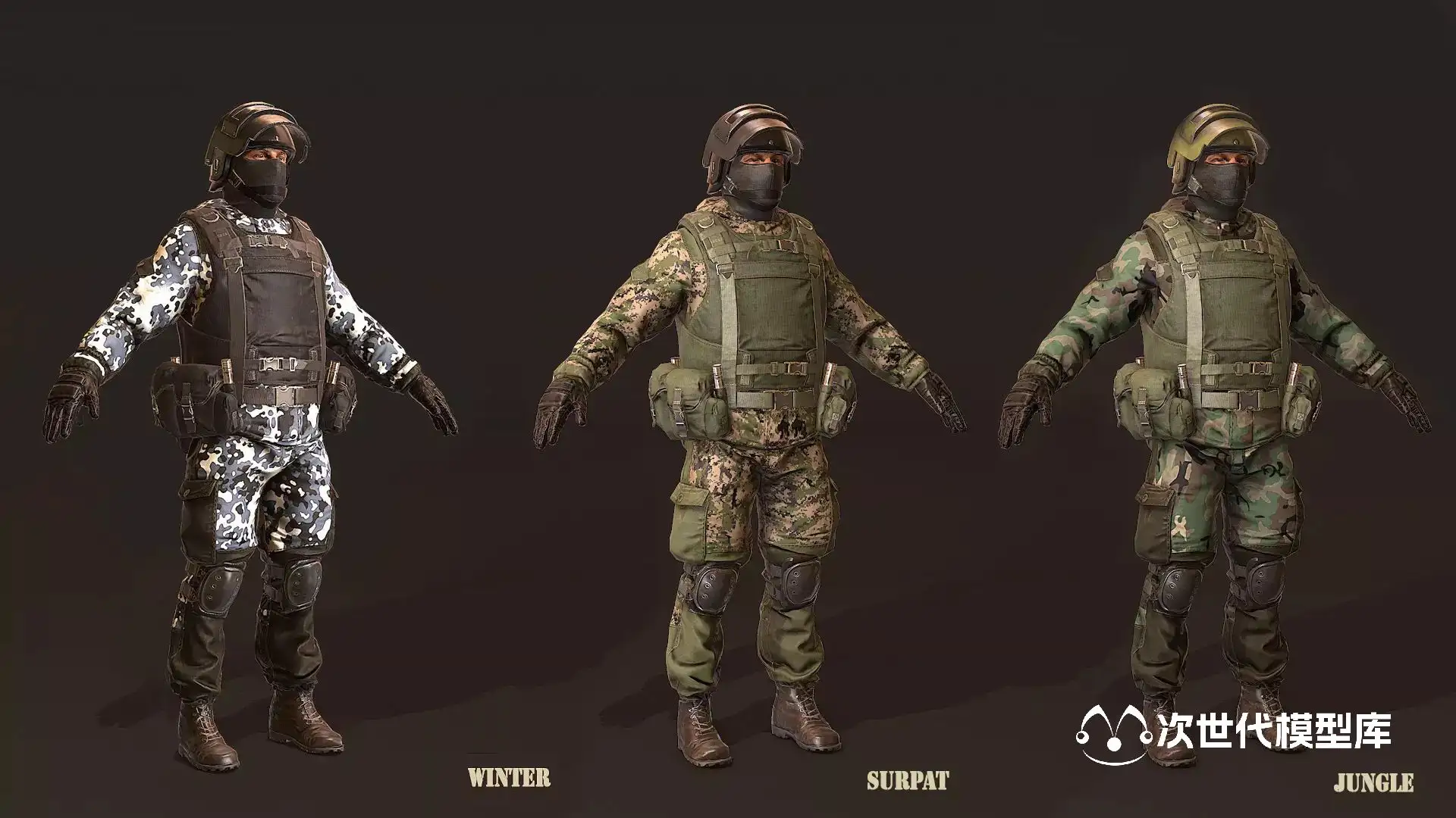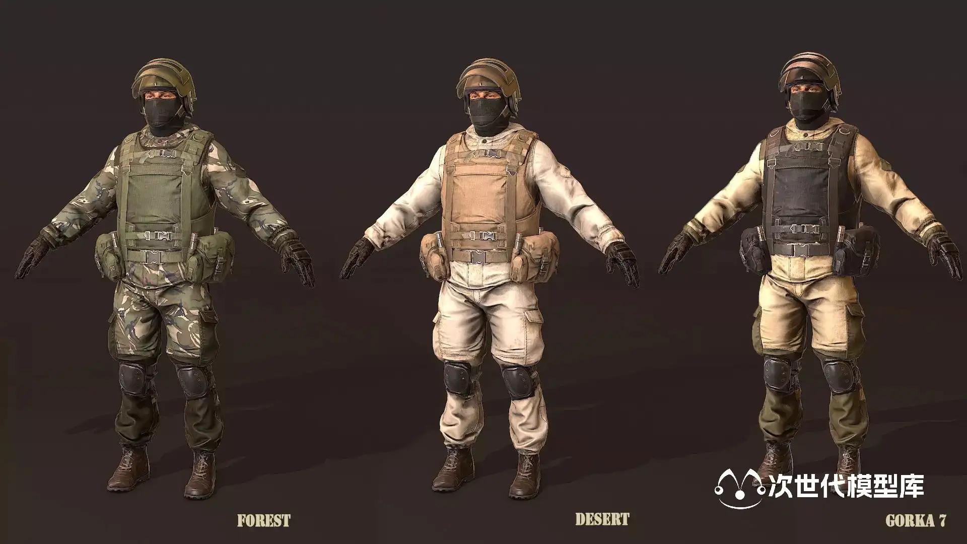 8种不同类型的俄罗斯武装士兵角色,具有AAA级游戏品质。资源包括3种不同类型的士兵身体,每个身体都包含装备、身体、背心、头盔和背包等内容。这些角色配备了适用于MotionBuilder/Unity Mecanim的骨骼动画系统,并提供了可用于武器附件的WeaponHolder骨骼。