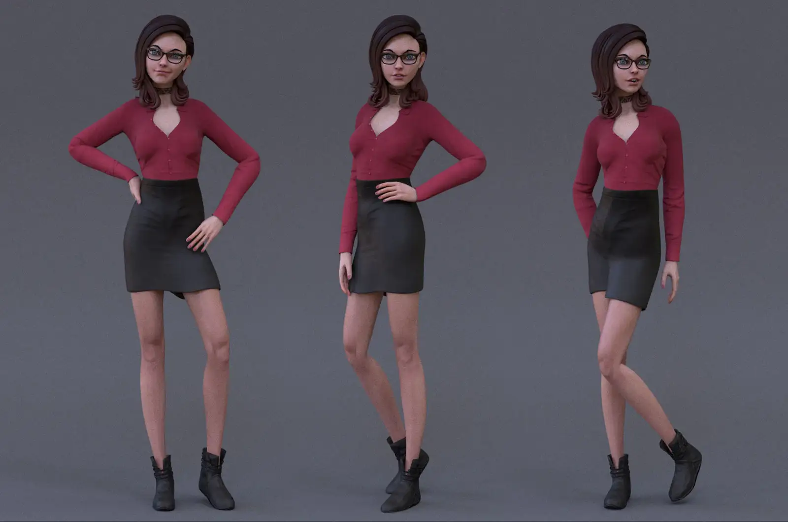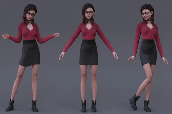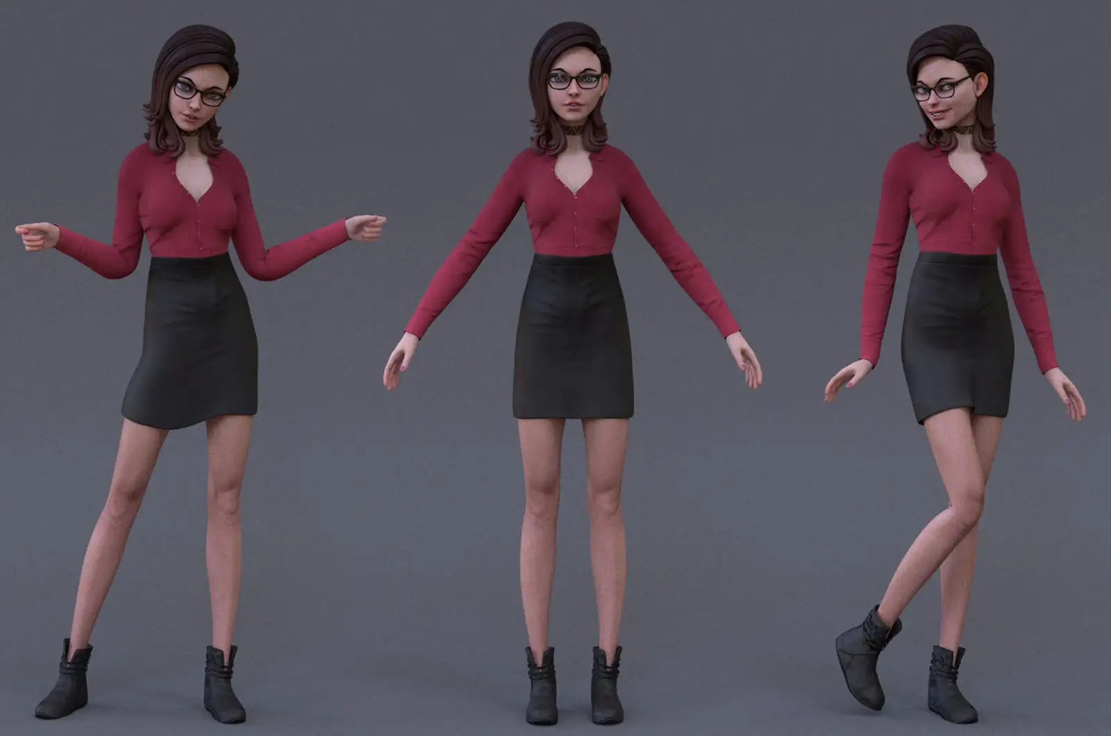 - Maya 2018版本:通过自定义绑定控制面板与Skin Modifier实现蒙皮,结合Morph Target完成面部表情变形系统,支持FK链控制(手指、脊椎、四肢)及头部/颈部旋转、眼球注视功能。