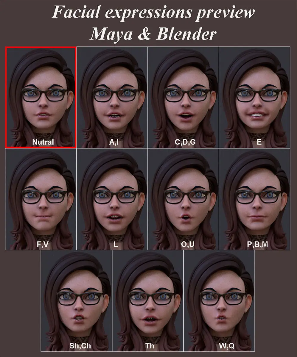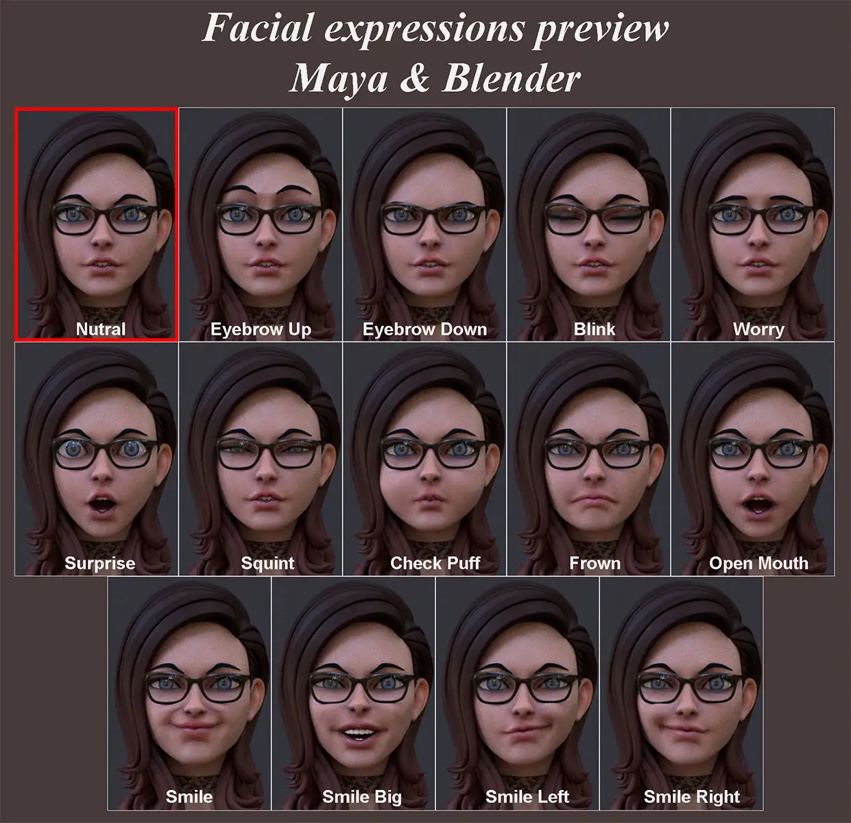 - Blender 4版本:集成Rigify系统,默认面部控制与自定义表情调节并行,兼容主流动画工作流。