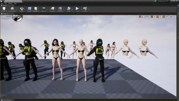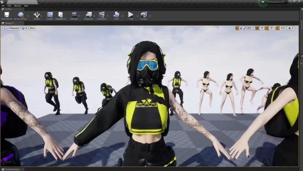 - Epic Skeleton适配:提供专为Humanoid角色优化的绑定文件,含IK骨骼(eyes_l, eye_r, breast_l, breast_r),支持骨骼权重自动映射,可直接导入Unreal项目并调用演示动画(retarget可用)。