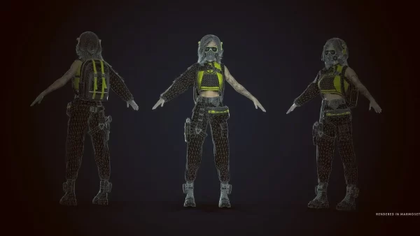 - PBR工作流:贴图通道完整(含Thickness、Emissive等特殊通道),分辨率涵盖2K–4K,支持多种发色、眼色、衣物颜色变体,UV通道独立划分,便于二次开发调整细节。