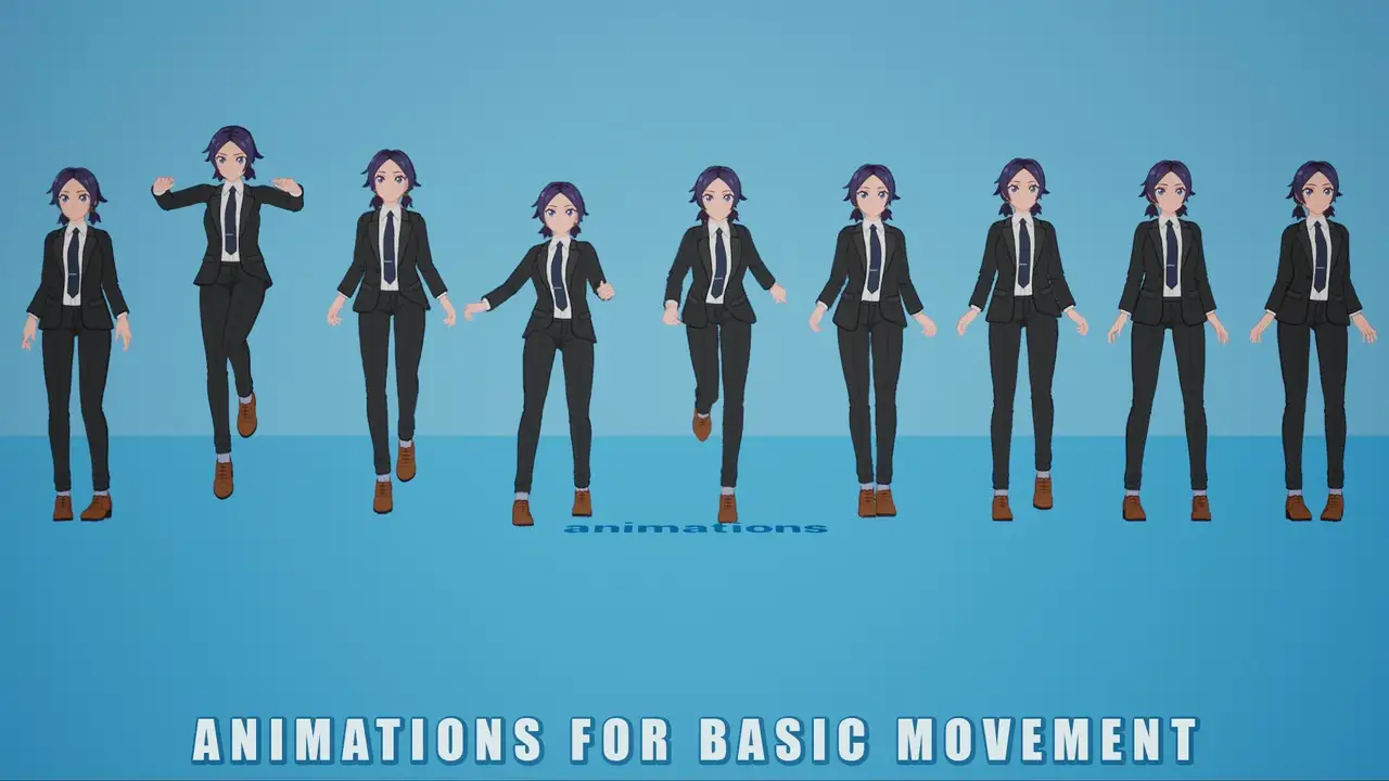 - 动画支持:内置9个基础动画(待机、行走、奔跑、跳跃、攻击等),适用于轻量级战斗或探索类游戏。