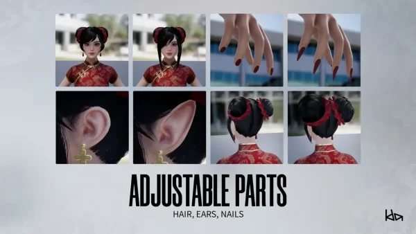 - 身体调节:乳房/臀部/嘴唇尺寸、发长、发髻大小、人类/精灵耳切换、膝盖形态