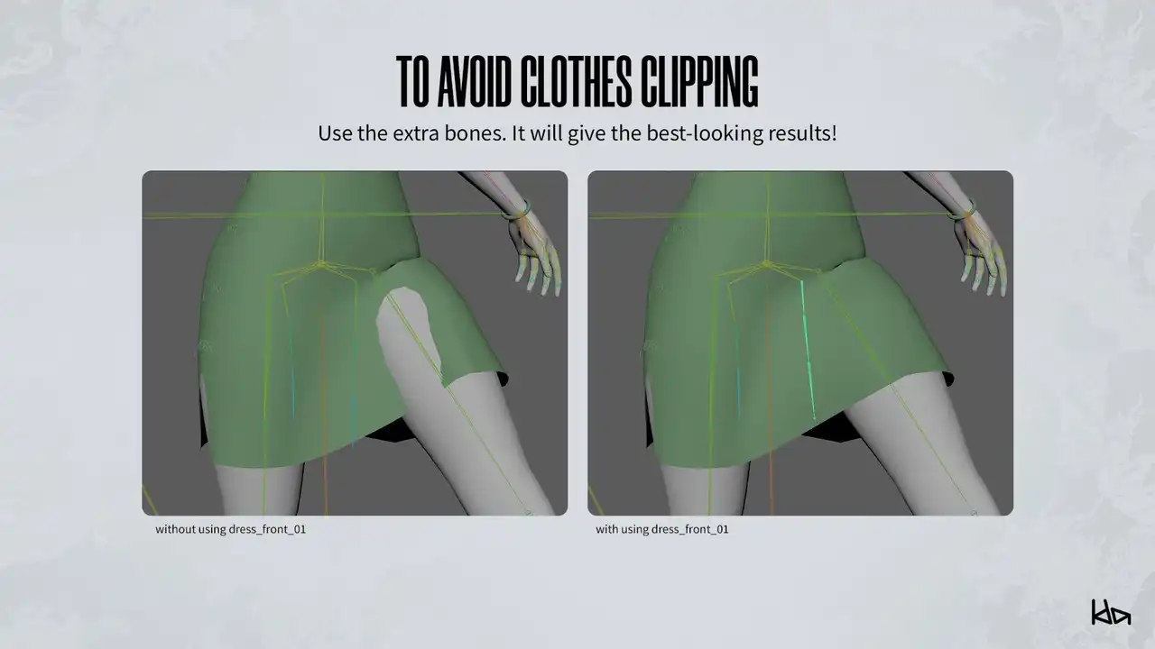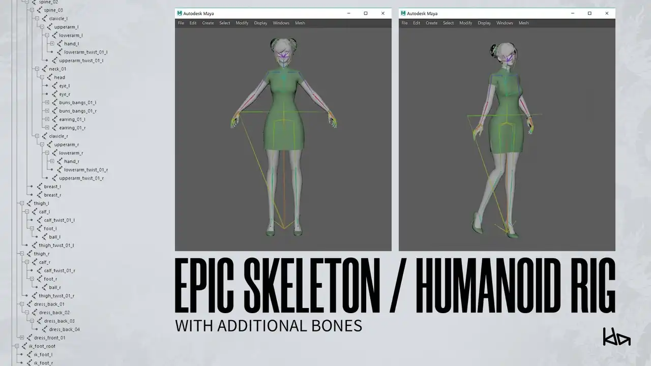 - 骨骼系统:UE Epic骨架(无插件纯Maya制作)+ 额外物理骨骼(用于配件动力学)