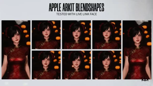 - 面部系统:52个Apple认证Blendshapes,兼容Live Link Face、Faceware、VTuber、VRChat等