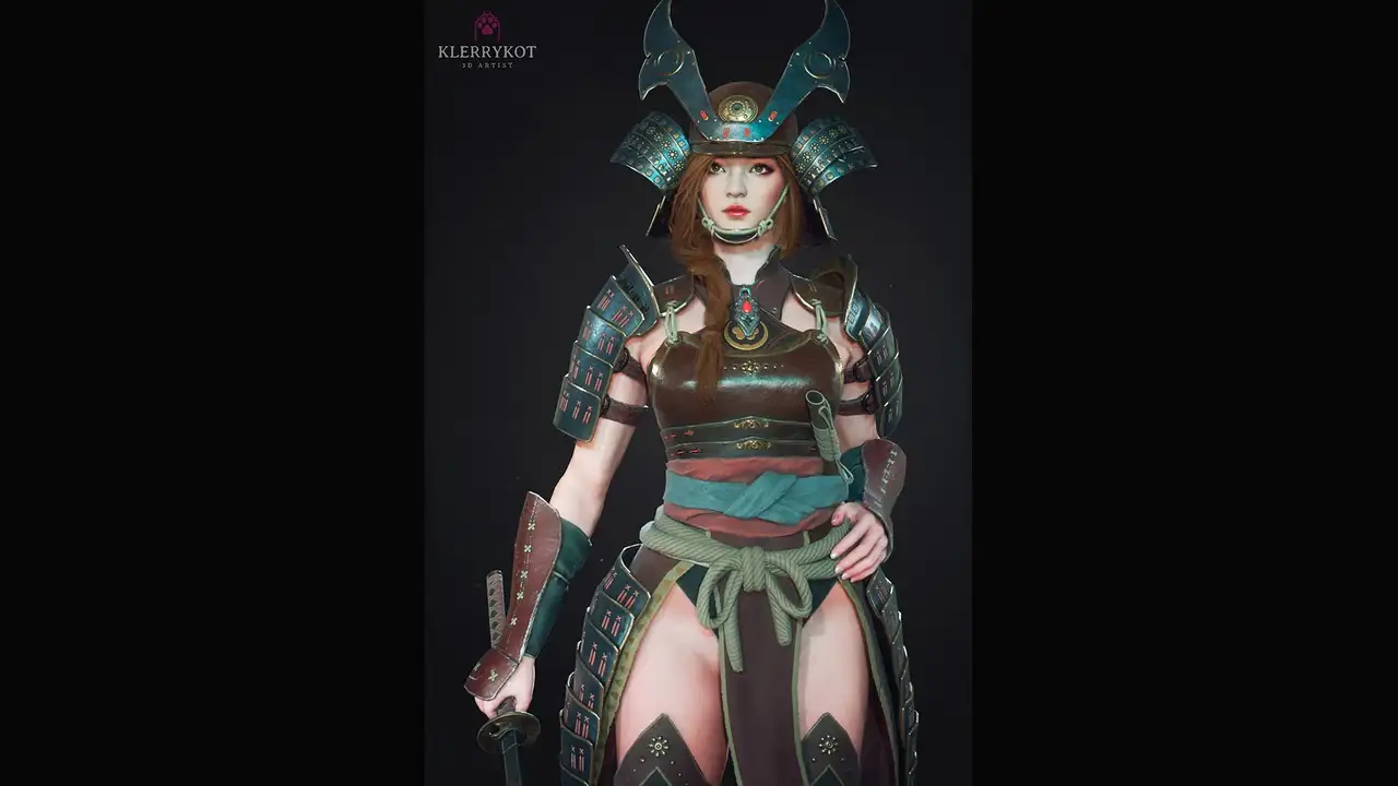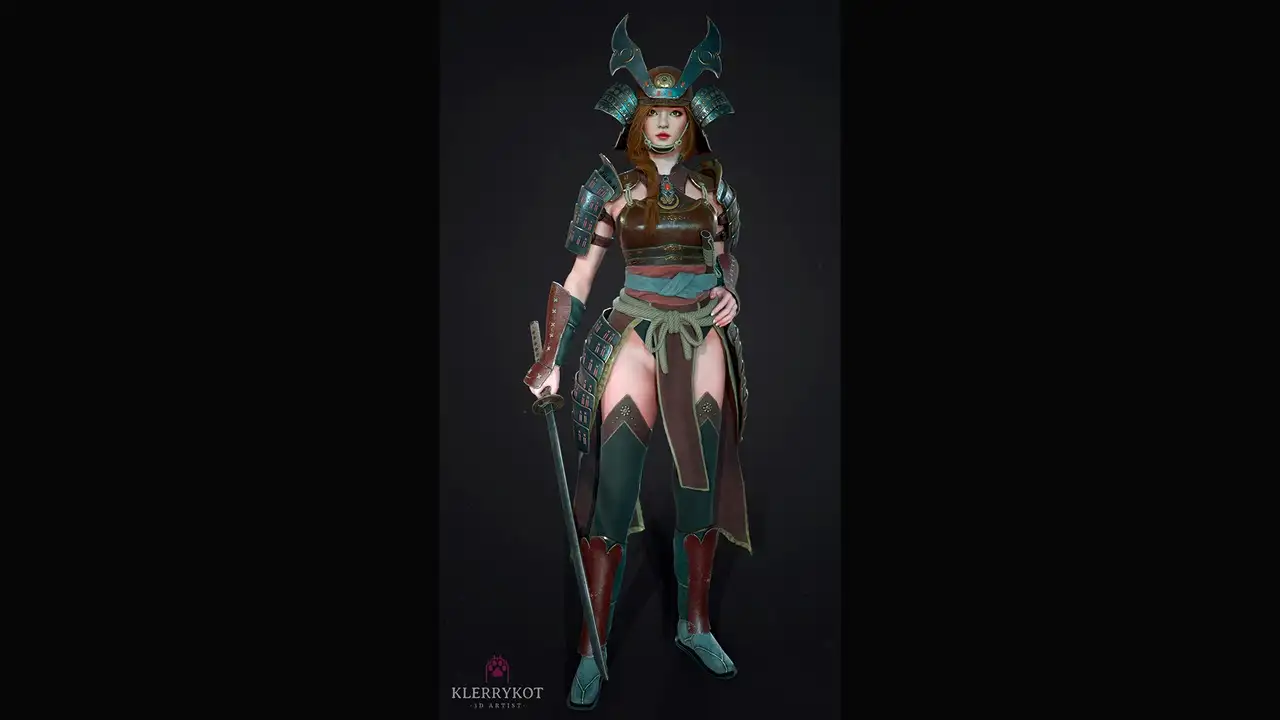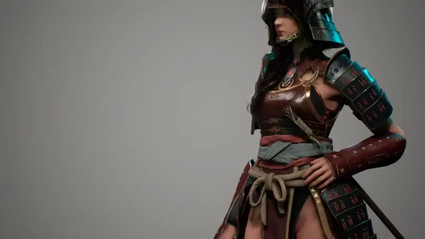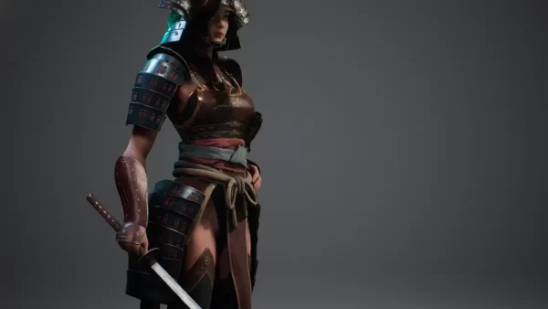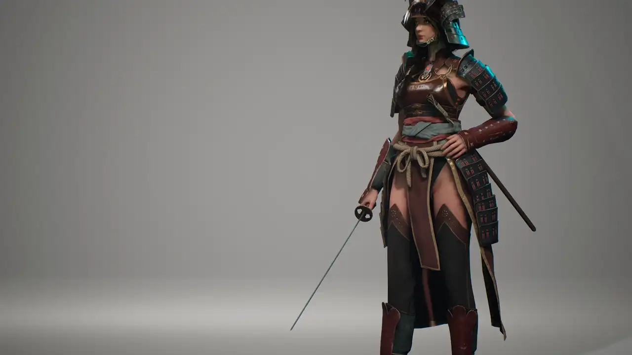 - Samurai Girl B(无头盔):38,505 顶点 两者均为独立静态网格体(Static Mesh),头盔为分离式网格,便于单独替换或隐藏。