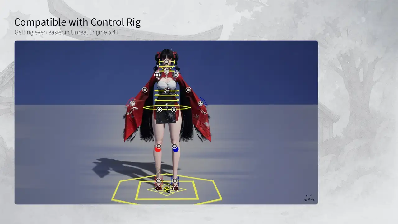 - 无物理系统,建议搭配KawaiiPhysics(UE)实现动态效果;