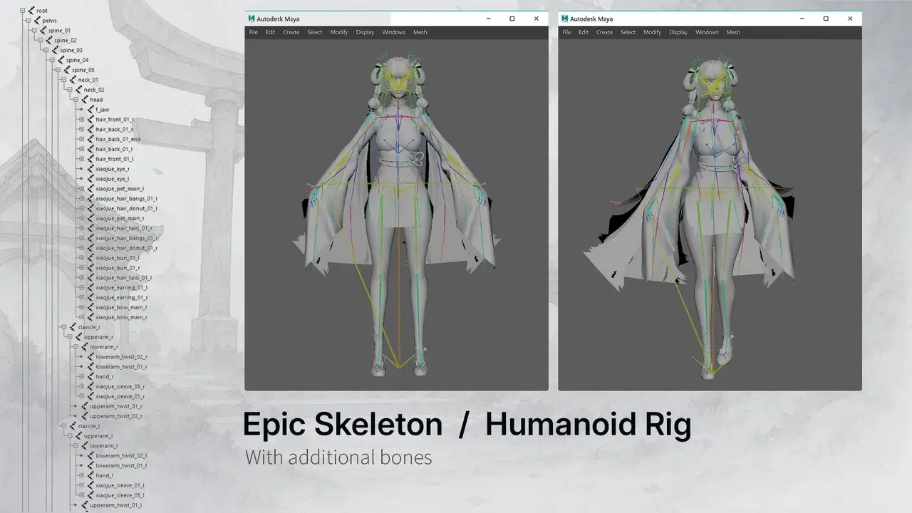 - 附加骨骼:用于头发、衣物、配饰物理控制(详见开发者文档);