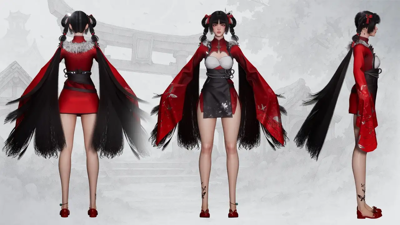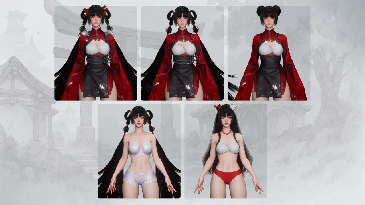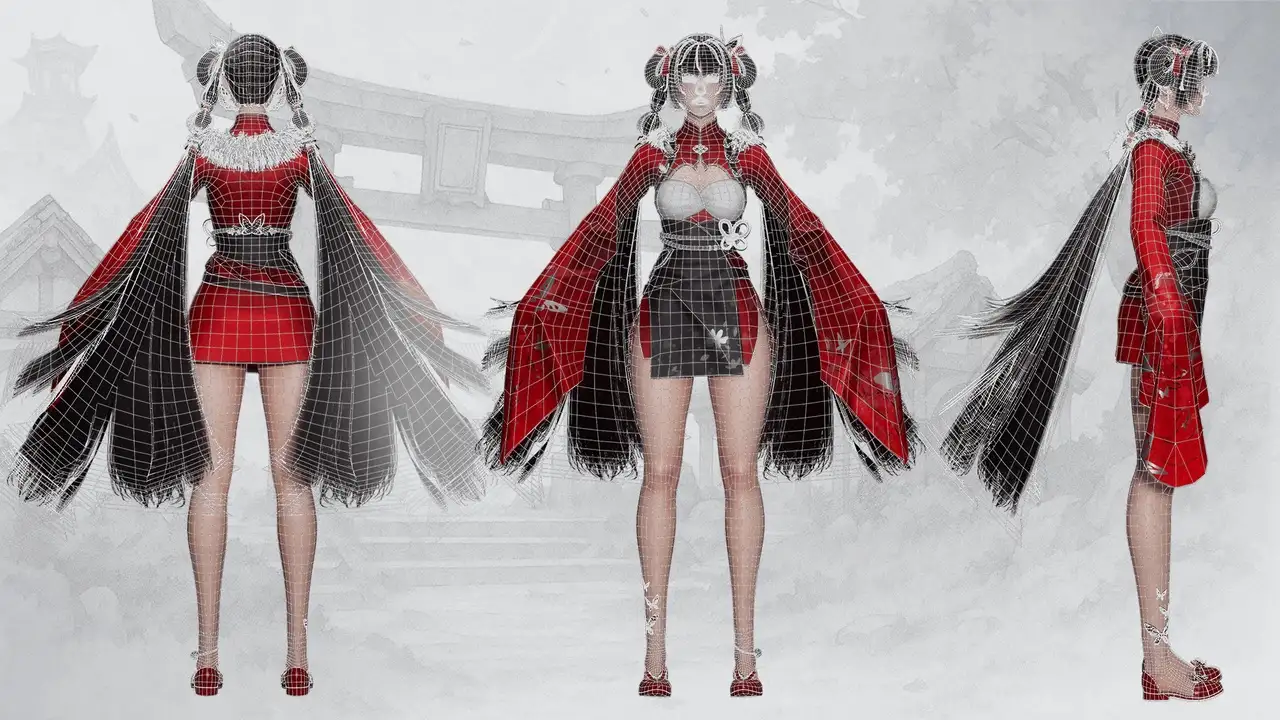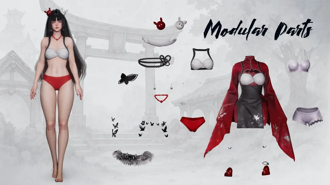 - 身体结构:采用分片建模(sliced body)避免穿模,隐藏于服装下的身体部分需手动关闭以降低渲染负载;