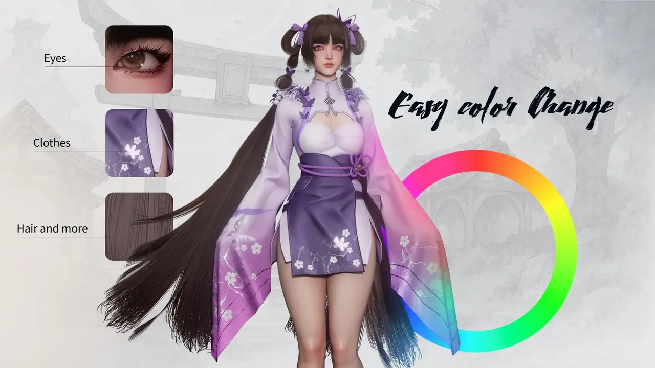 - MatID贴图支持按区域(皮肤、眼睛、服装)独立换色,无需重绘;