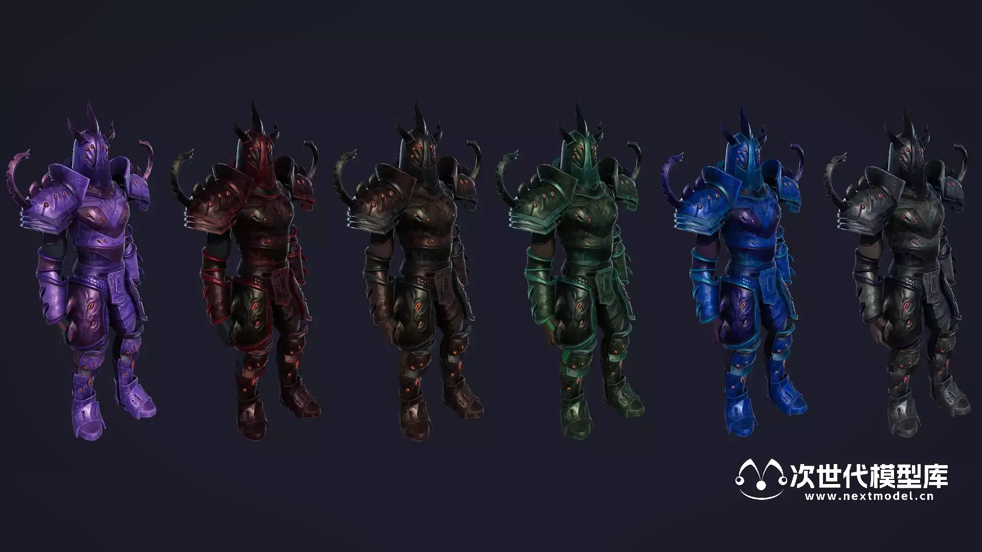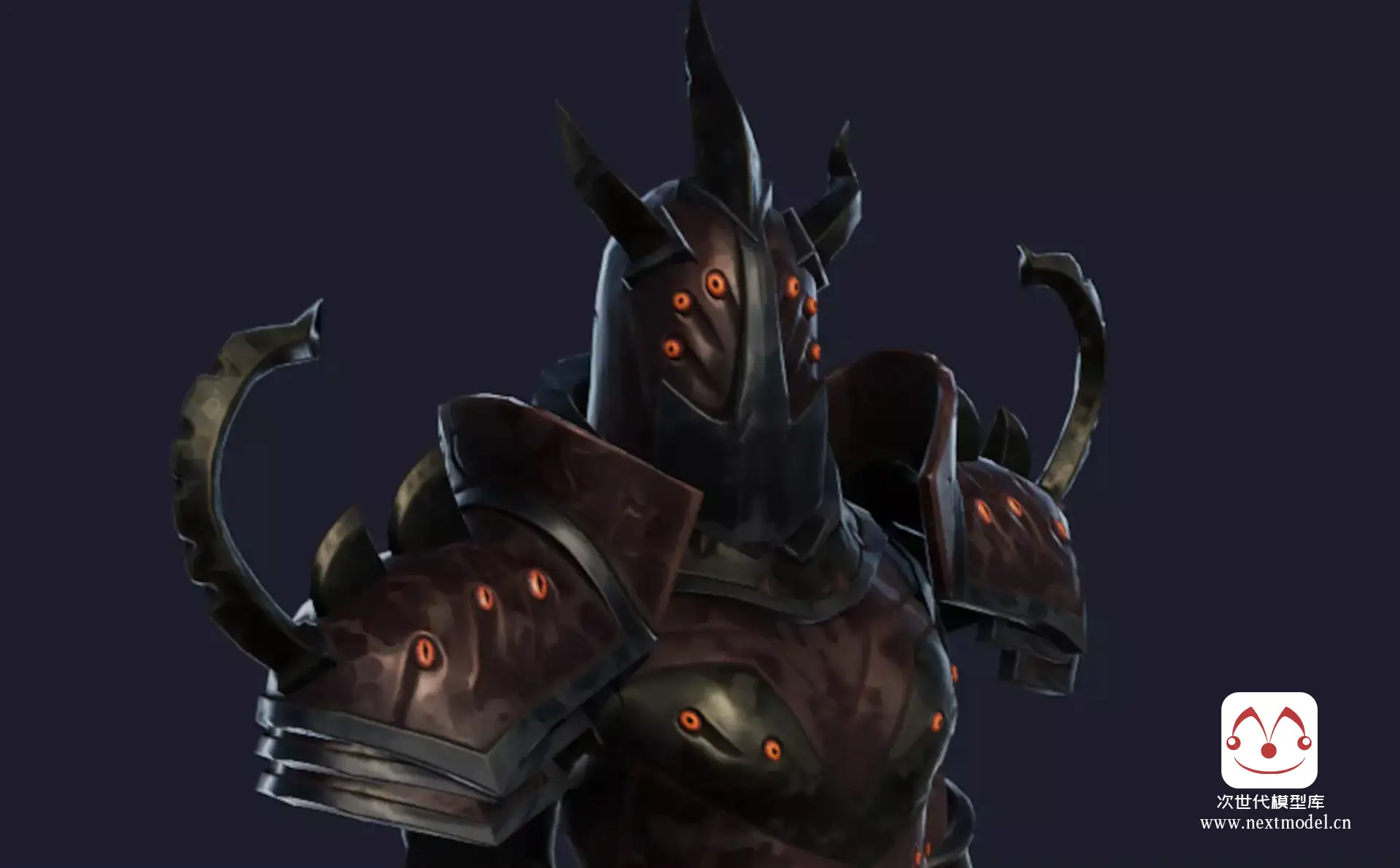一款模块化设计的盔甲恶魔猎手战士角色模型,适用于开发RPG和MMORPG游戏的模型资源。该模型的纹理贴图尺寸为2048x2048。具体内容包括以下几点: