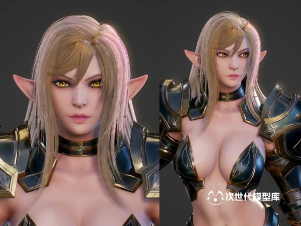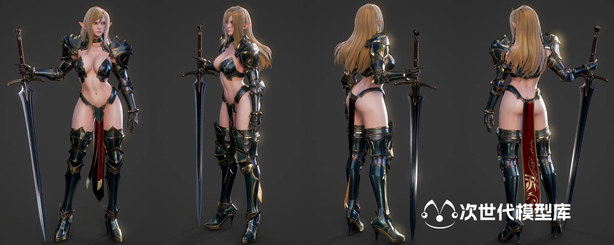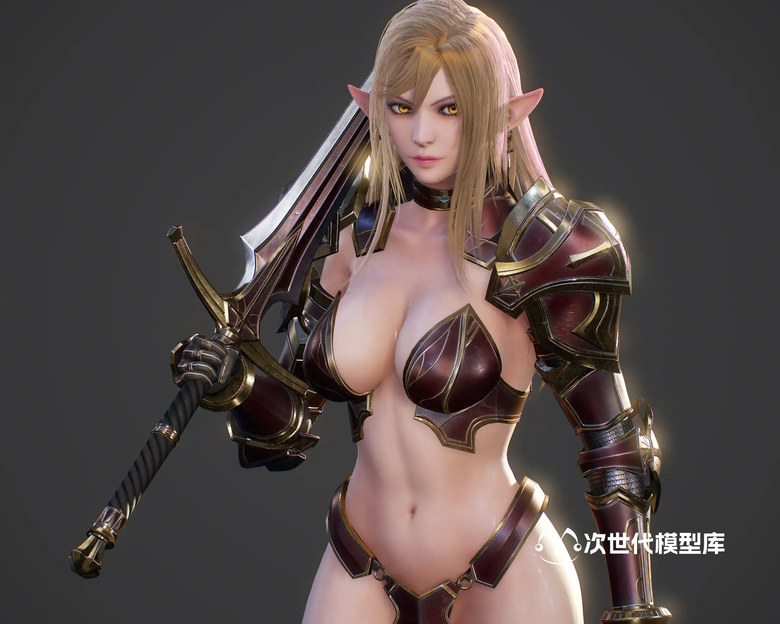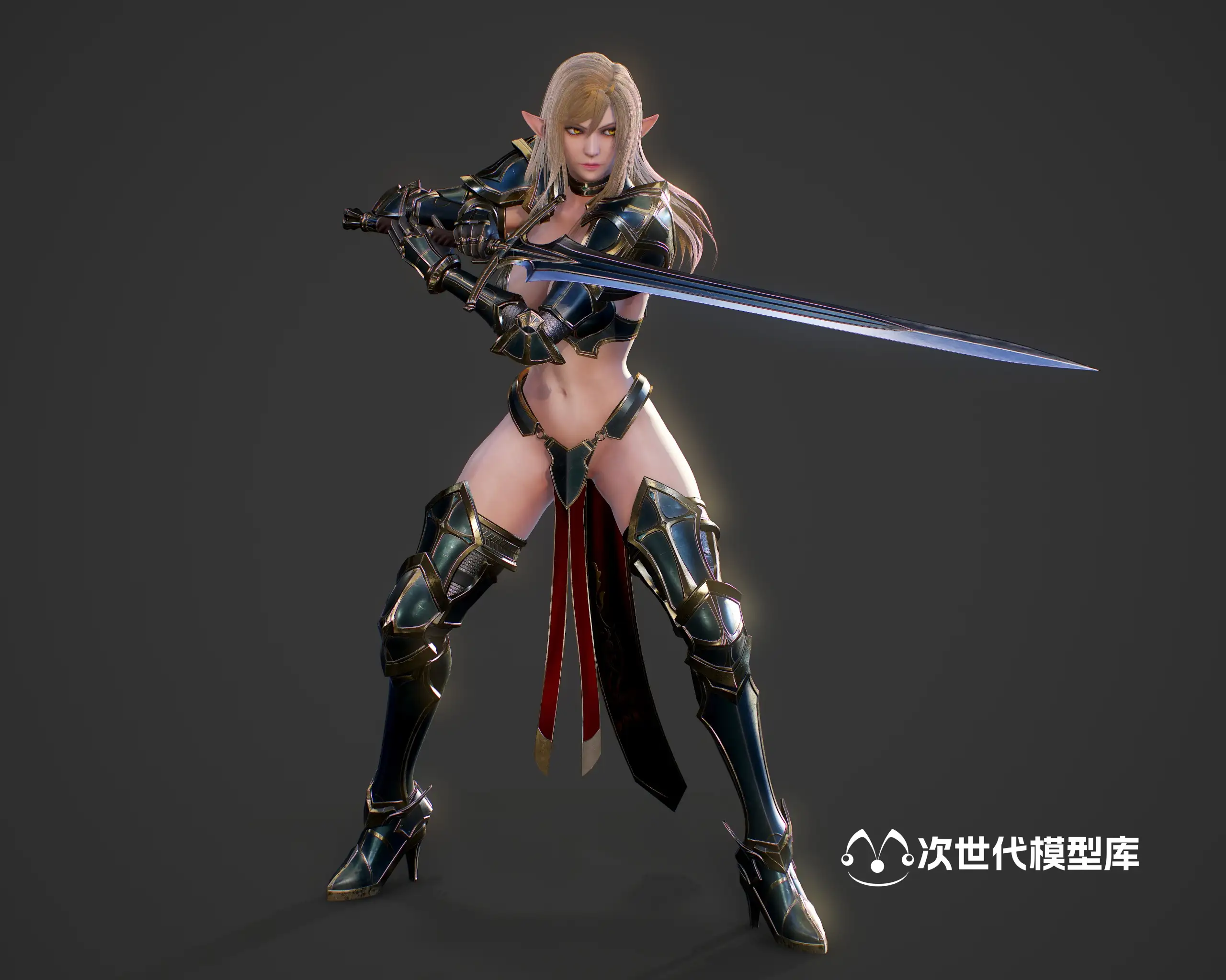AAA级游戏品质的女性精灵剑士/剑客角色的3D模型信息。该模型采用Low poly(低面数)优化,适合游戏使用,已经完成绑定和PBR纹理贴图制作,纹理尺寸为2048*2048像素。模型还包含裸体网格。此模型支持在UE4(虚幻引擎4)中使用,并且可以直接导入Unity引擎。
