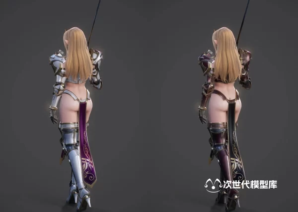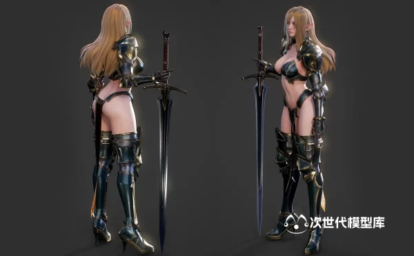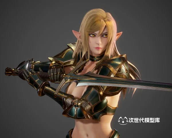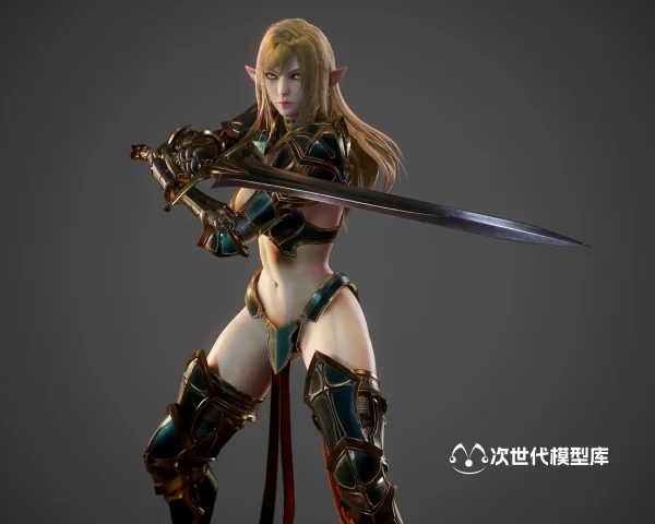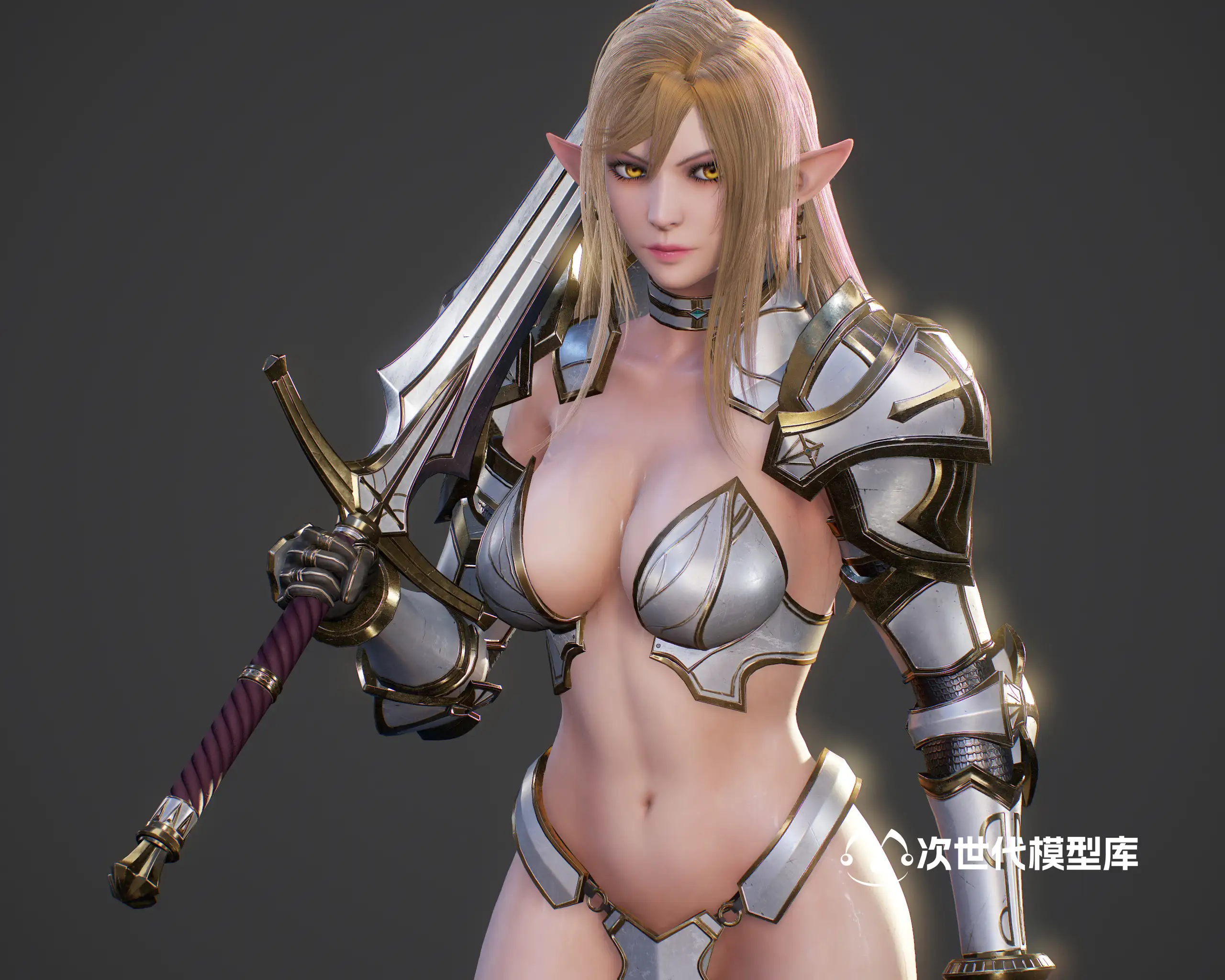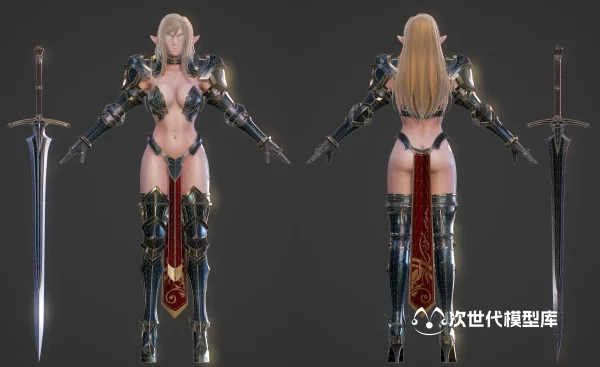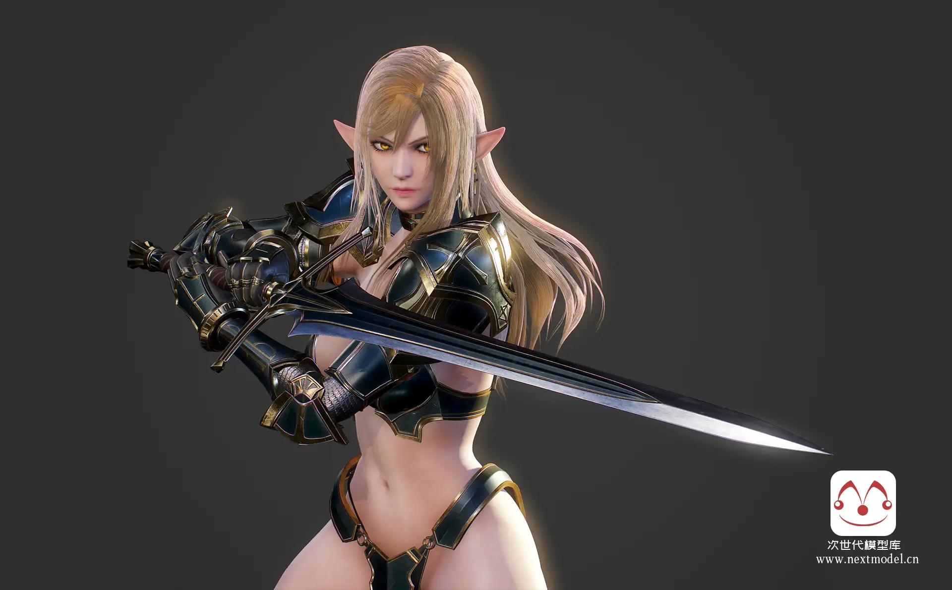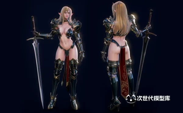 AAA级游戏品质的女性精灵剑士/剑客角色的3D模型信息。该模型采用Low poly(低面数)优化,适合游戏使用,已经完成绑定和PBR纹理贴图制作,纹理尺寸为2048*2048像素。模型还包含裸体网格。此模型支持在UE4(虚幻引擎4)中使用,并且可以直接导入Unity引擎。