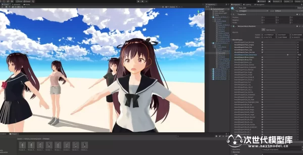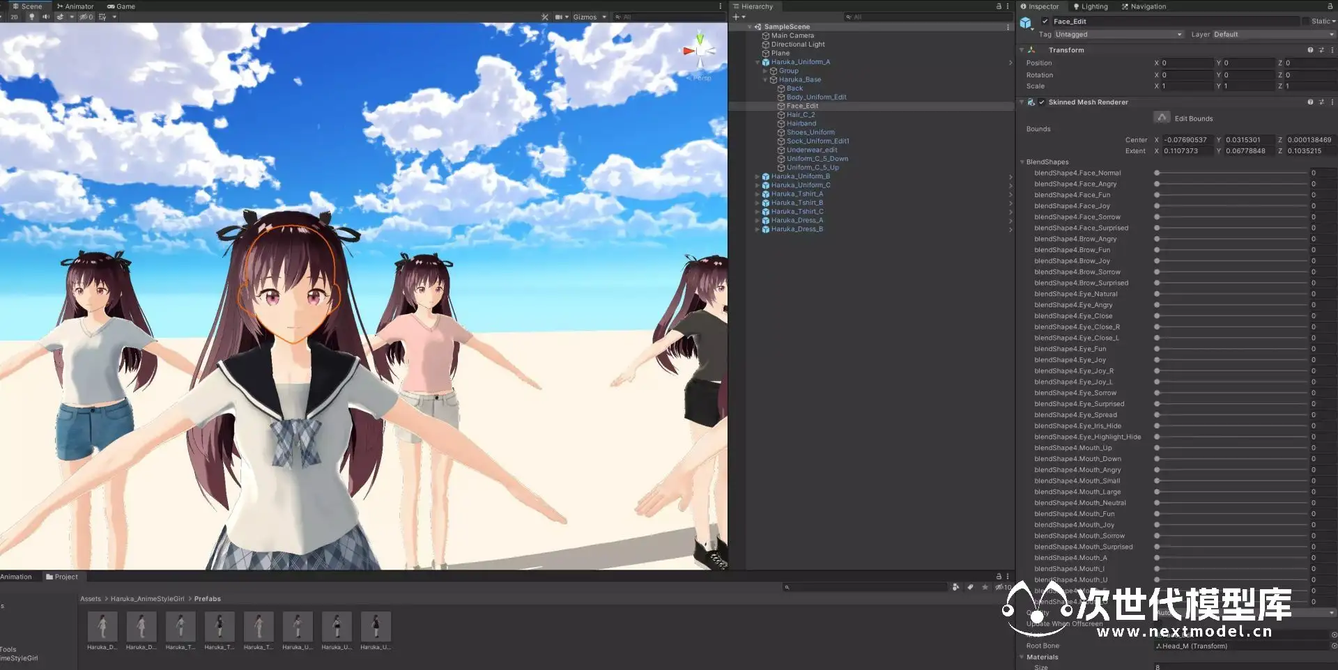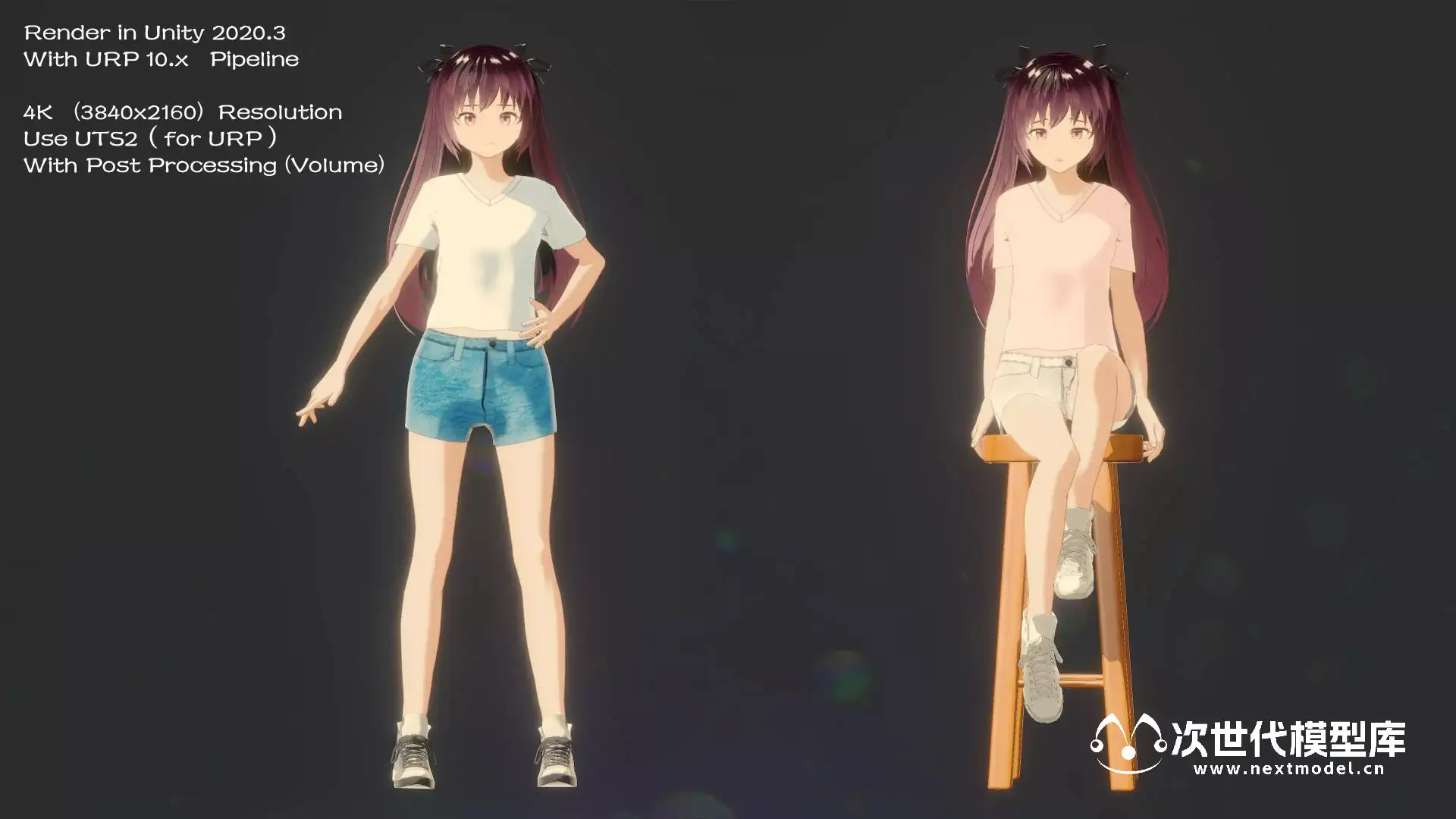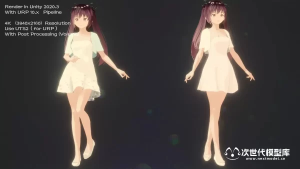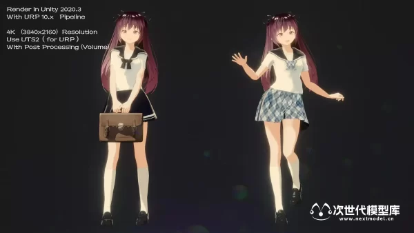 非常可爱的日式动漫美少女人物角色模型,使用独特的日式动漫风格渲染。该模型资源支持骨骼装配,同时拥有超过40种面部表情动画。资源仅包括角色模型,不包含背景、动画、其他项目和后处理效果。项目中使用UTS2(Unity-Chan Toon Shader Ver2)作为默认材质,并支持URP渲染管线。