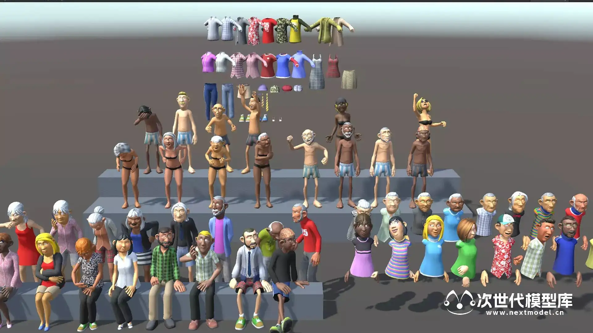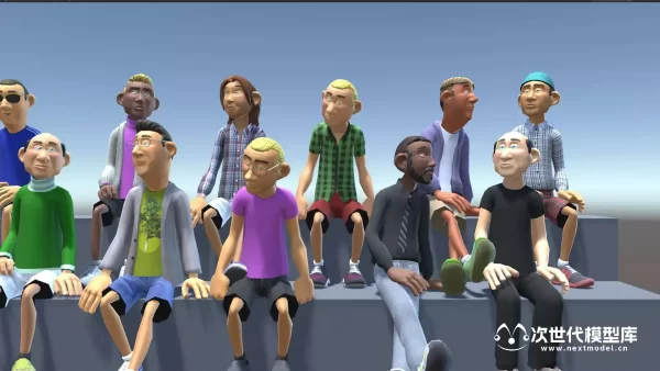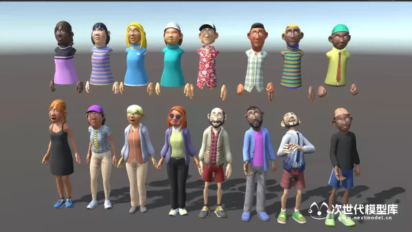 高品质的卡通人物角色模型,资产包括6个低多边形带动画角色,每个角色都有14种可互换的头发、胡须、领带、帽子和眼镜选项,以及各种各样的衣物供您选择。不仅如此,还有274个精美的png纹理,包括166种衣物、18种皮肤和法线贴图、29种头发颜色和法线贴图、14种眼镜和法线贴图、40种帽子等等,分辨率从1024x1024到128x512不等。