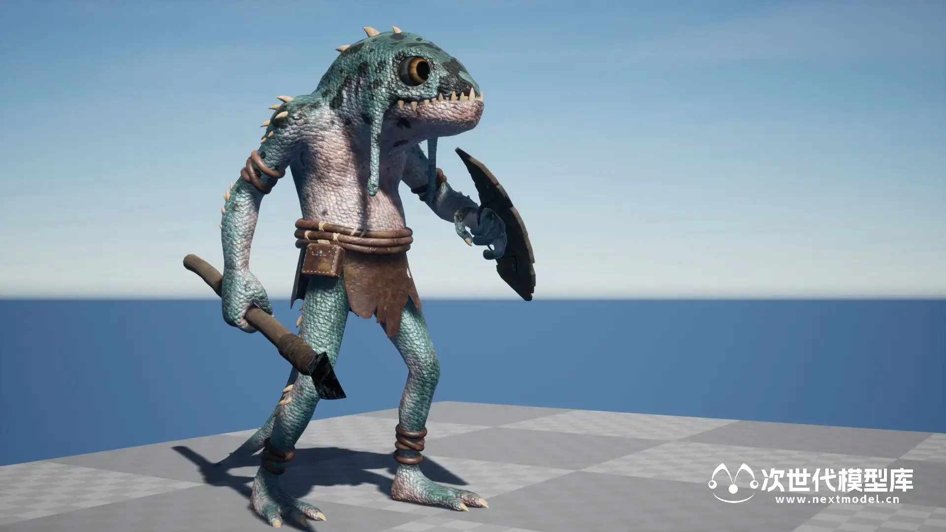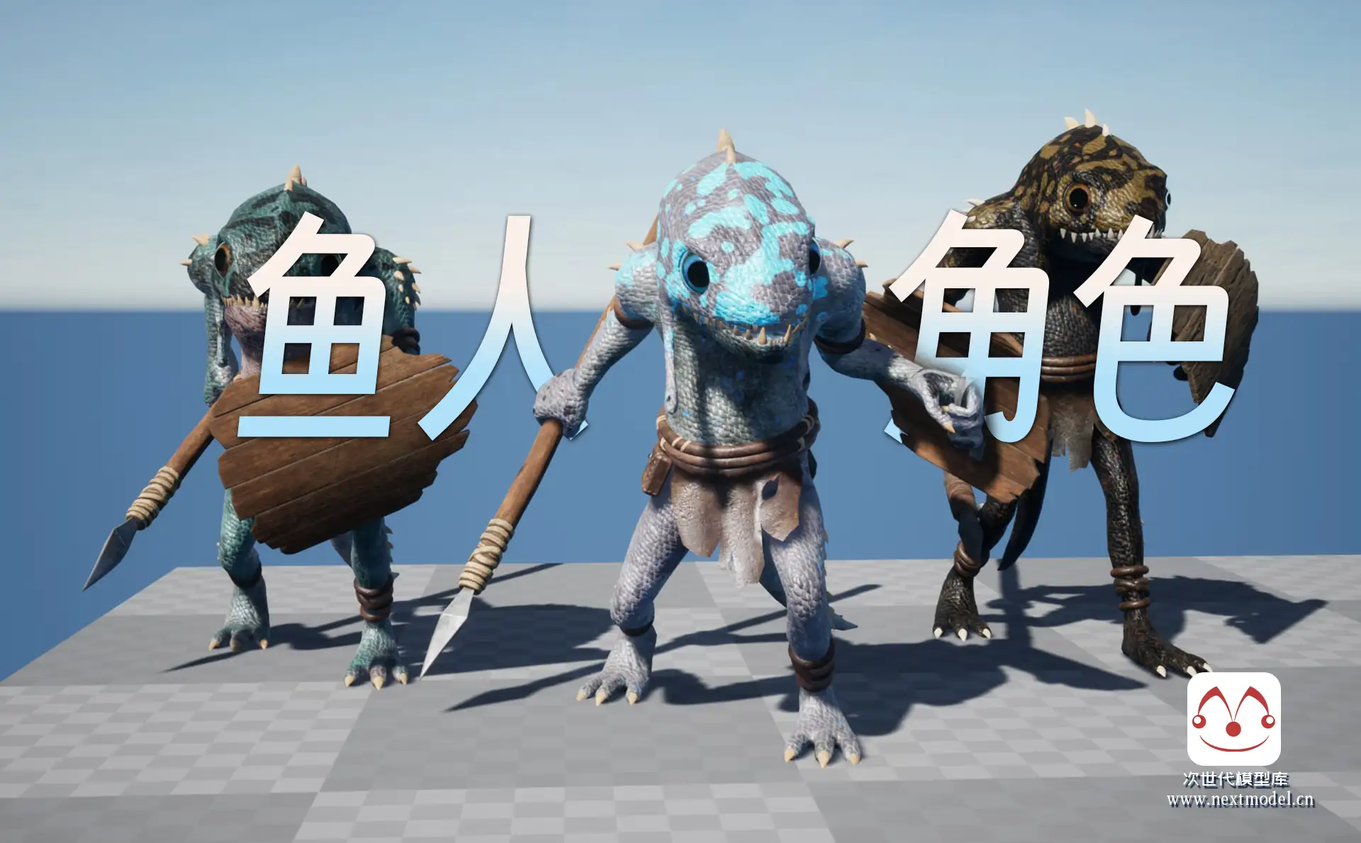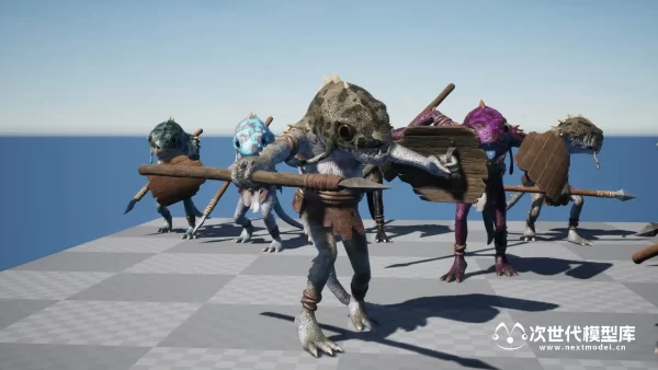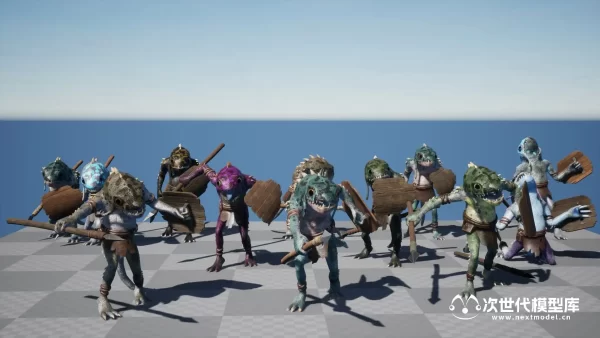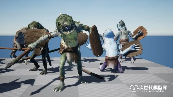 适用于奇幻类型角色扮演游戏(RPG)的鱼人角色模型,资产包含多个不同皮肤外观的角色,多套纹理集合,全部采用4k纹理。使用模块化设计,鱼人使用的武器-矛、盾牌、衣服均可自由替换。资产还包括FBX格式的文件。