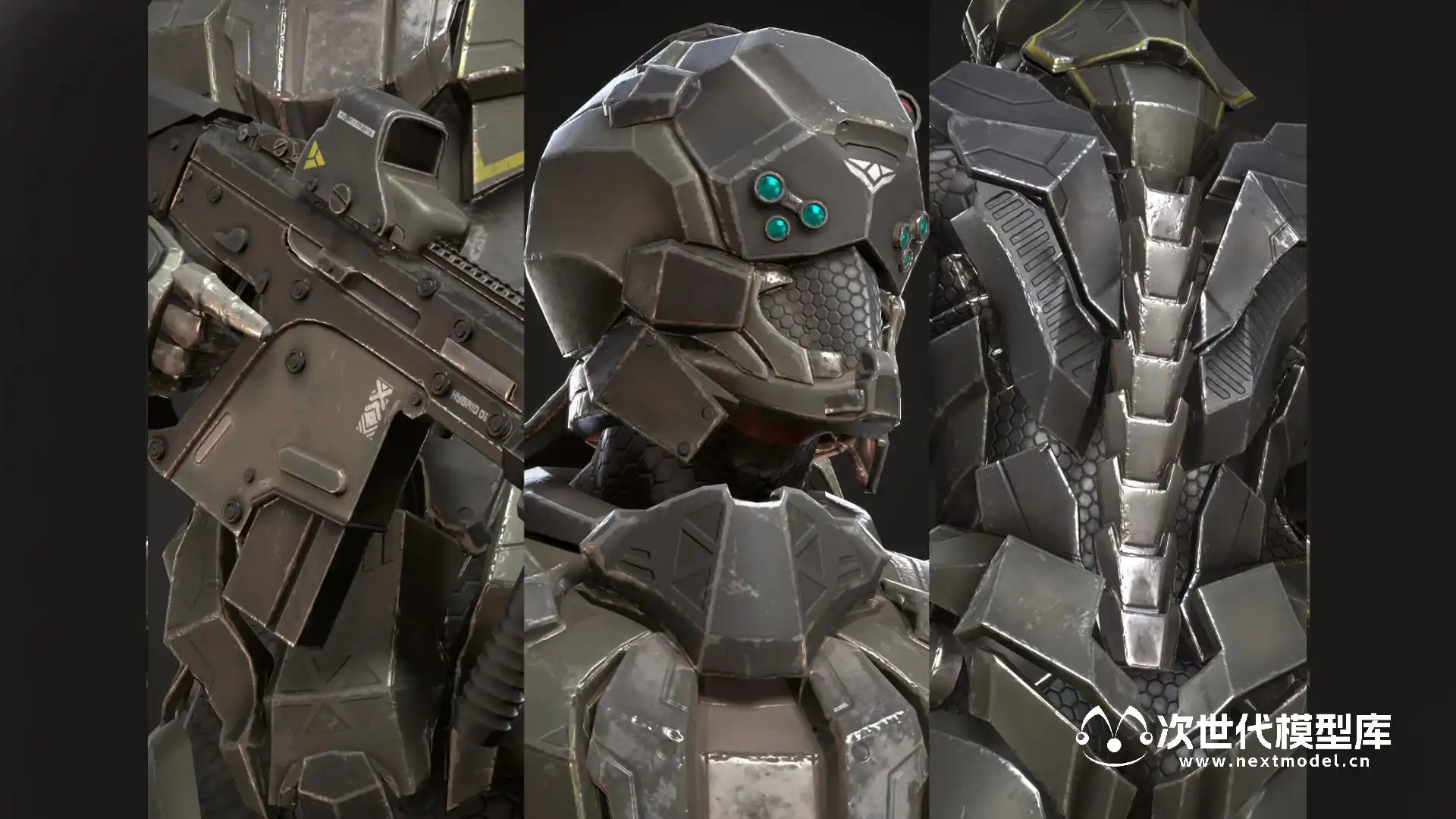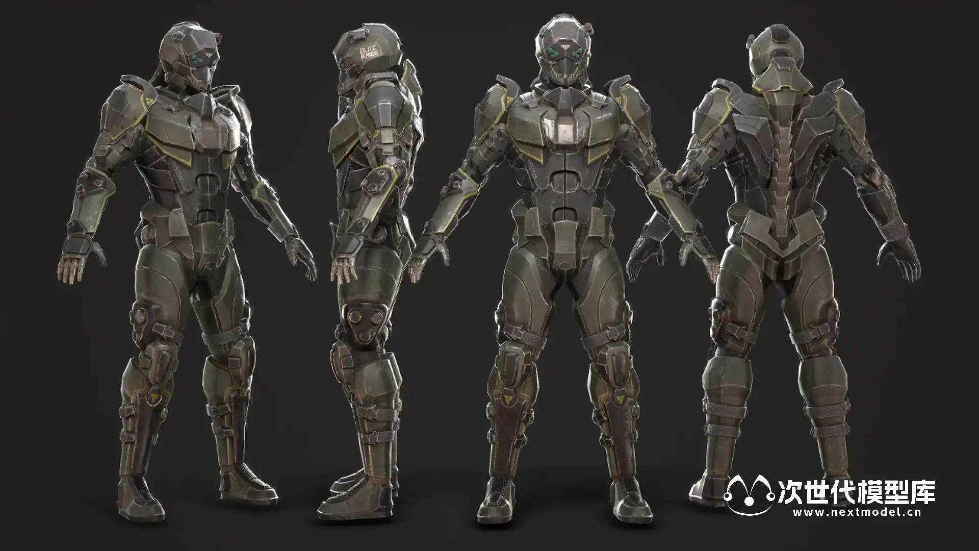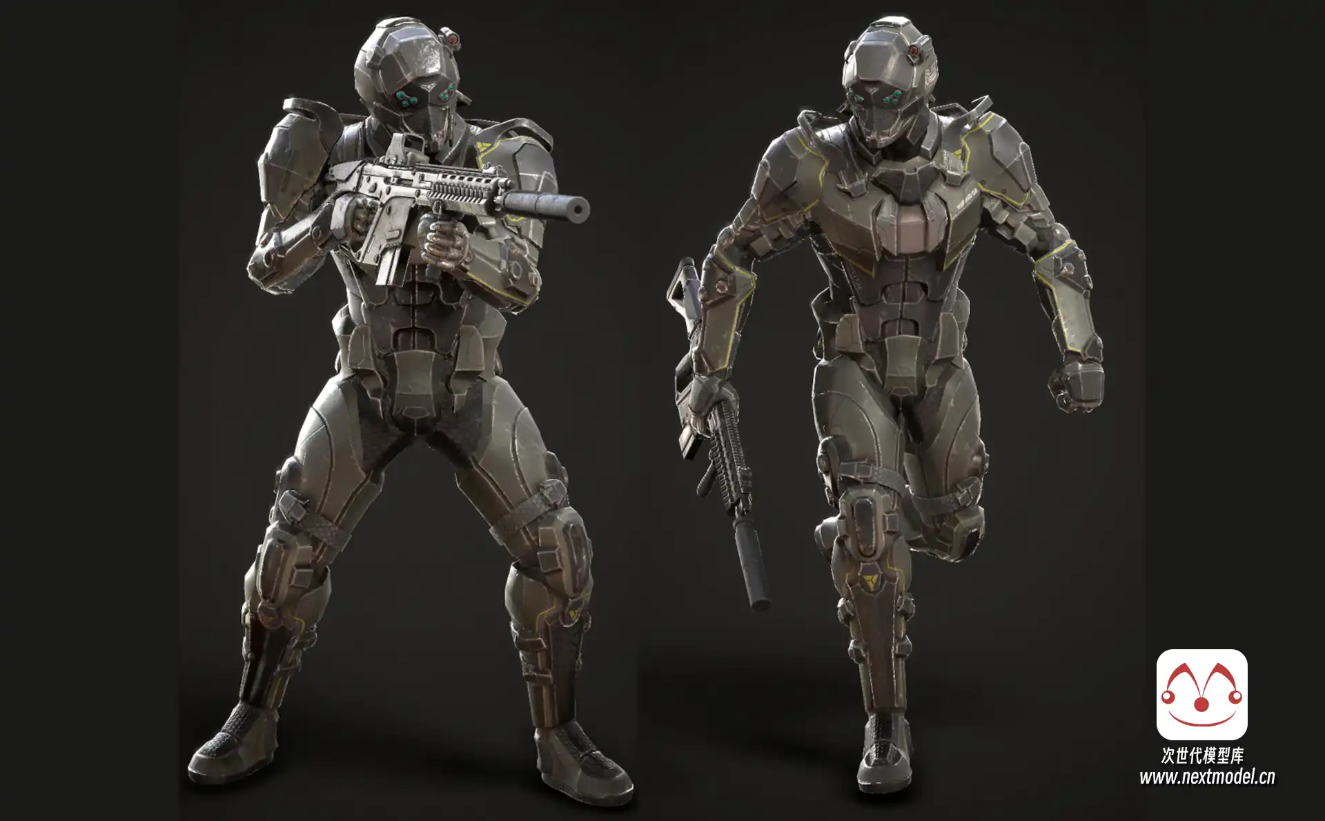 未来科幻风格的士兵游戏角色模型,模型处模型本身外还包含一把突击步枪。模型对游戏进行过深度优化,并完美兼容Epic骨架,定制化材质参数,配备高分辨率2K纹理。