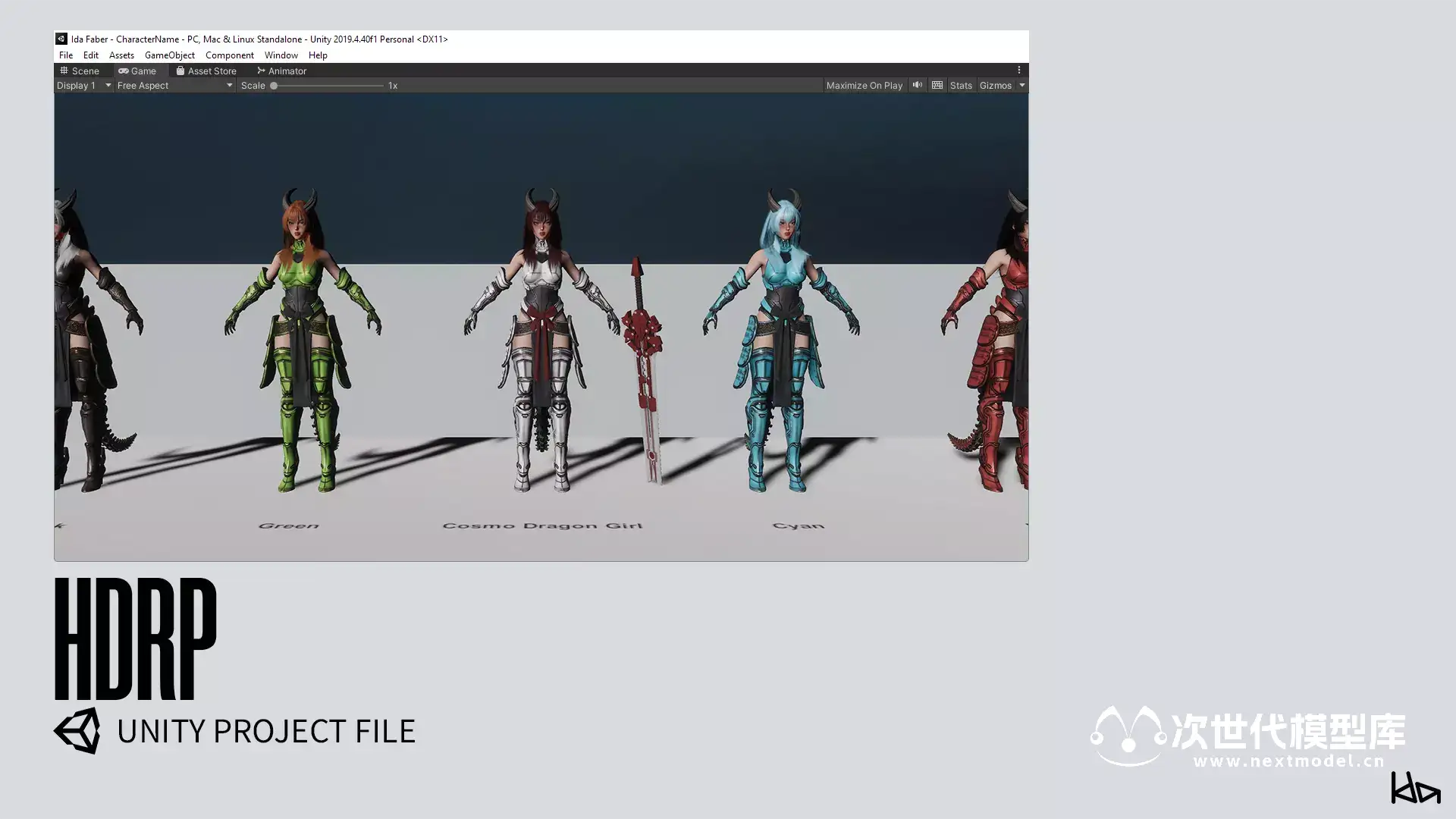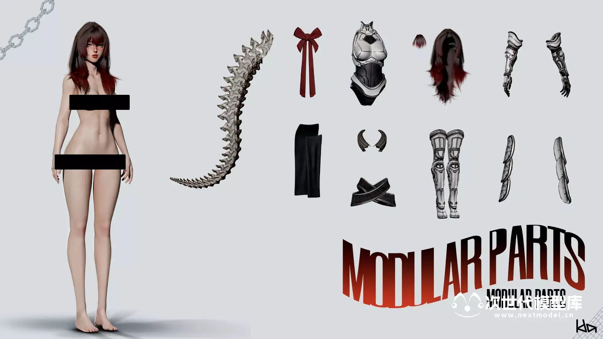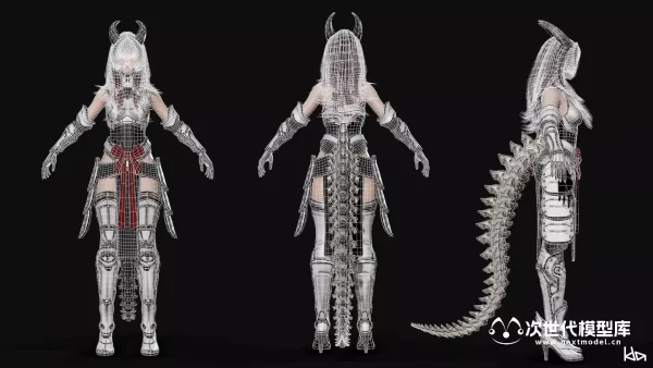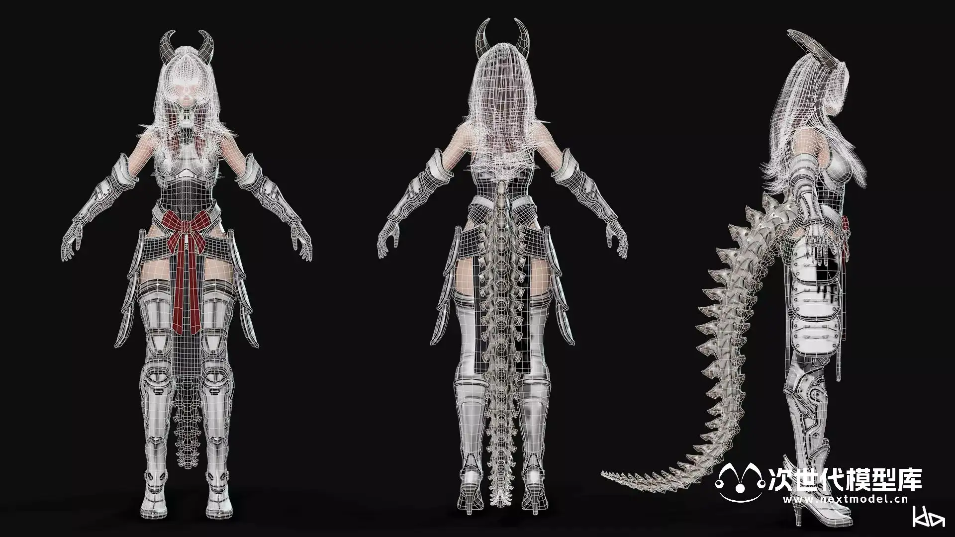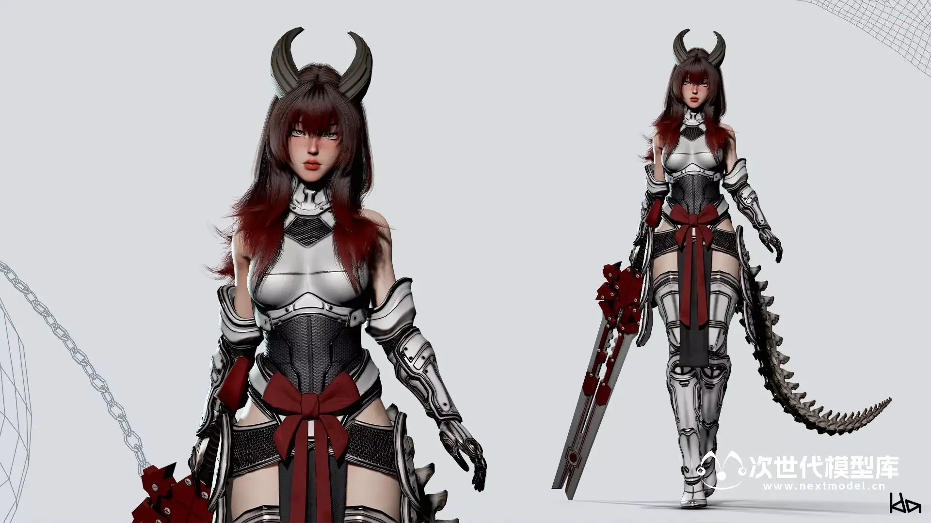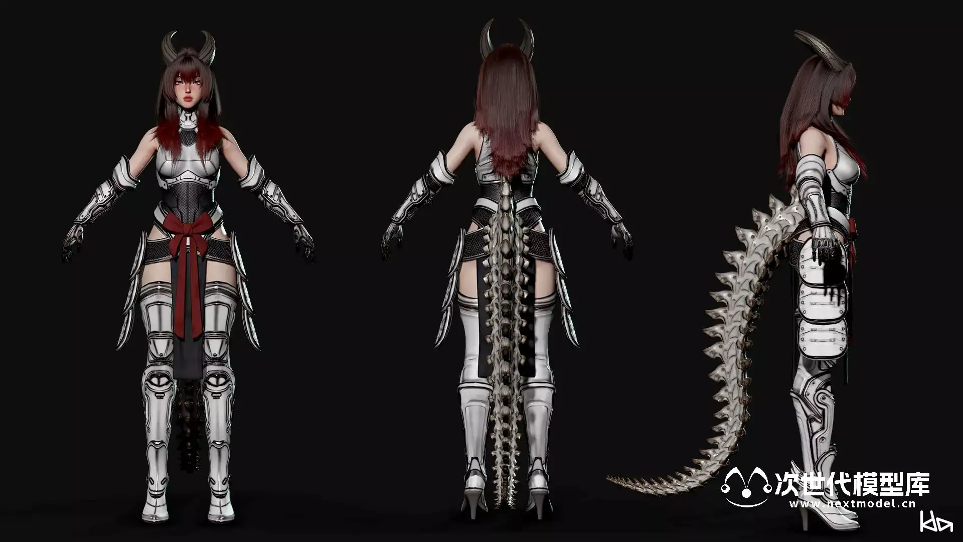 超高品质的龙族女孩游戏角色3d模型,采用完全模块化设计,身体与衣服完全分离,模型支持Unity的HDRP\URP\默认渲染管线等;拥有10 个纹理集 包含身体、头部、眼睛、头发、睫毛、牙齿、角 + 尾巴、鞋子 + 手套、躯干、剑等。
