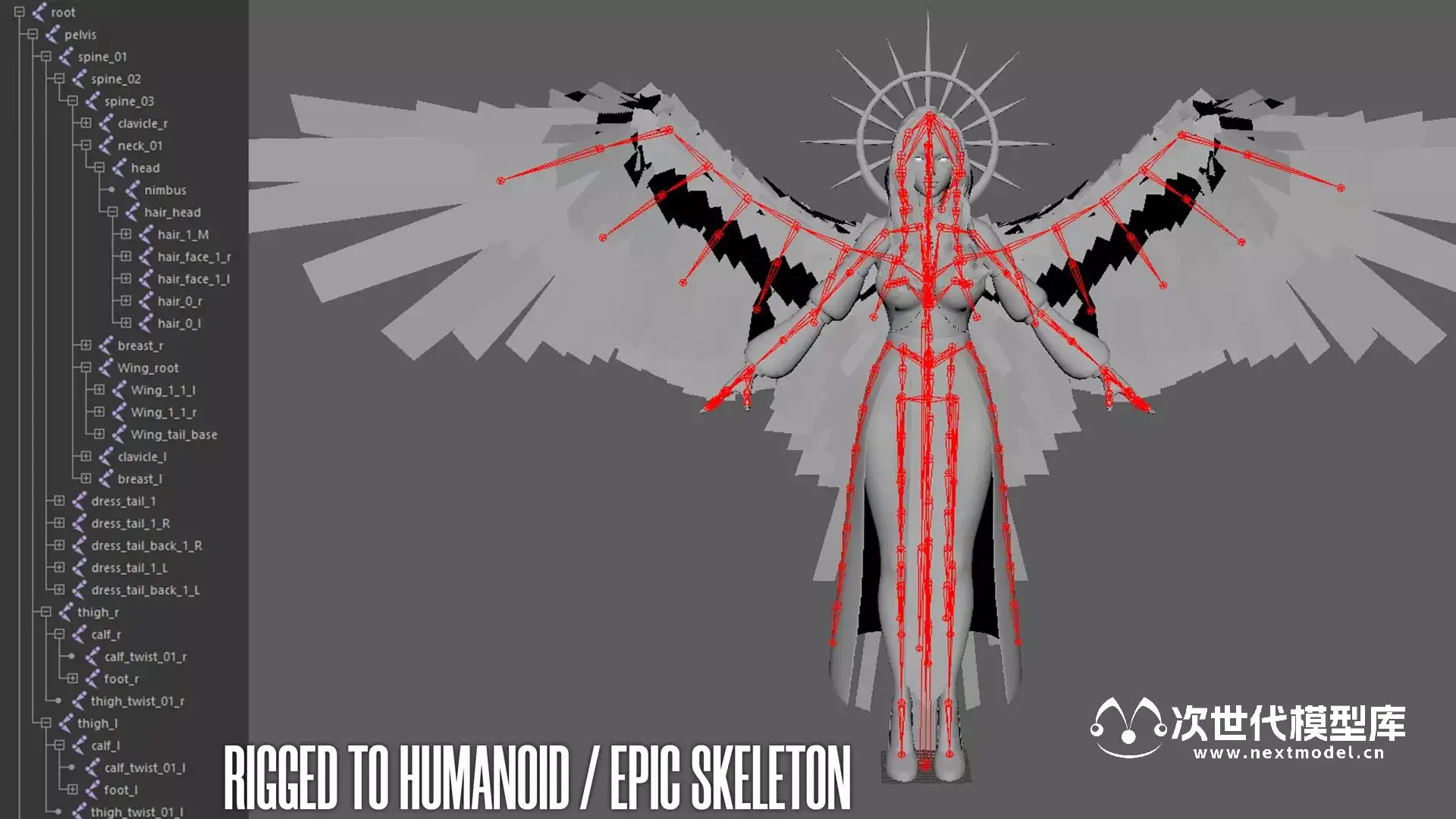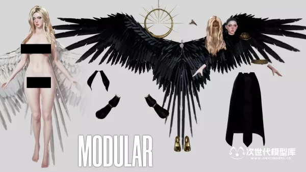 超高品质的美女天使3D模型采用模块化设计,身体和衣服分离,可以根据个人需求进行自定义更改。该模型具有两种形态,分别是暗黑天使和光明天使。此外,还包含以下四个动画:飞行、起飞、飞天、飞行休闲。该模型的4K贴图包括以下内容:法线贴图、金属贴图、粗糙度贴图、基础贴图、透明度贴图以及材质ID。此外,还包括8个纹理集,分别用于身体、头部、翅膀、衣服、牙齿、头发、眼睛和睫毛、配件等。