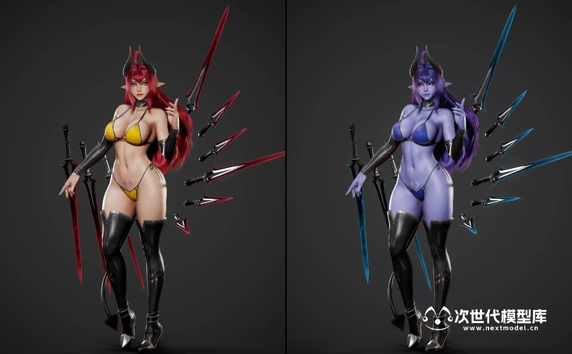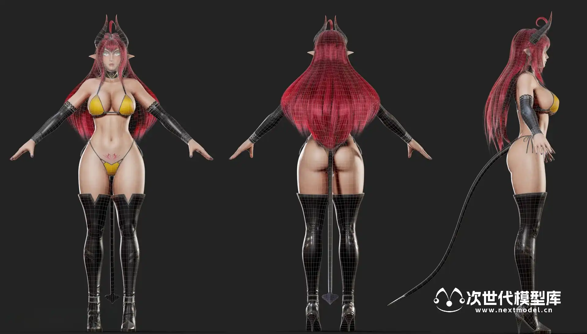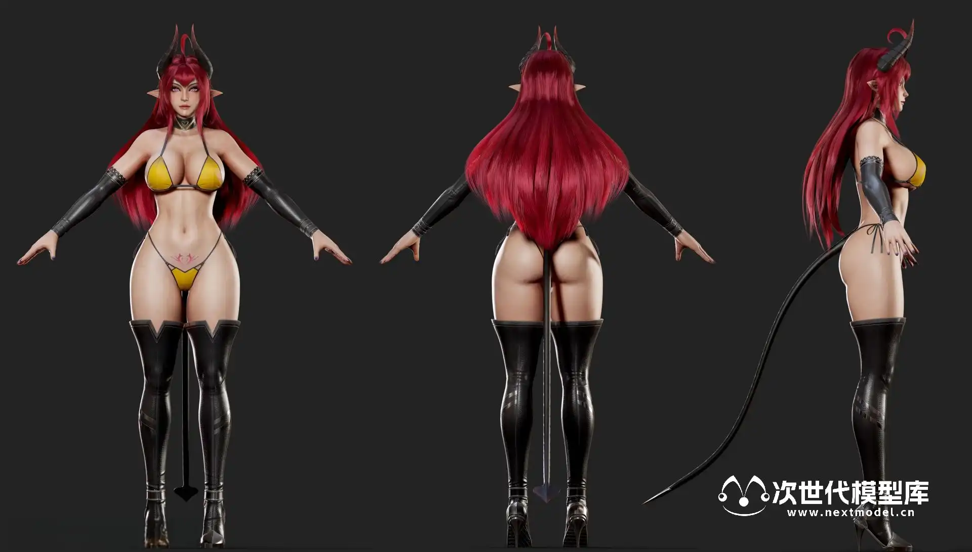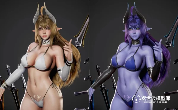 Daemon Girl恶魔女孩游戏角色,一款为游戏准备的低多边形3D模型,现已推出。这款模型具备低多边形、游戏就绪、已绑定和PBR纹理的特点,支持UE4并可导入Unity。模型包含三种身体版本:全装、半裸和全裸,三角面数分别为87,296、81,142和74,664。模型的单位为厘米,身高174cm(含高跟鞋)至185cm(含角)。UE4项目包含可播放的蓝图和物理效果,FBX文件夹包含所有三种身体版本,Uassets文件夹可直接导入UE4项目。Blender 2.80的.blend文件已打包,3DS MAX中的皮肤处理包括全身骨骼和基础面部骨骼。PBR纹理(金属-粗糙度)有2048X2048和4096x4096两种尺寸,DirectX法线贴图,.TGA格式。纹理文件位于RyanReos_DaemonGirl\Assets\Textures文件夹中。还包括Marmoset文件,内含材质和工作室照明设置。为了提供更多预览图片,还有一个截图文件夹。