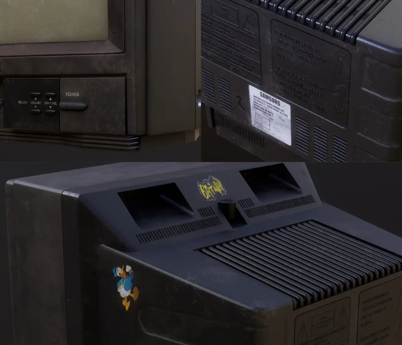 90年代到老旧电视模型,拥有.max格式\FBX\OBJ, 贴图使用 substance painter和Marmoset制作;贴图支持2k。