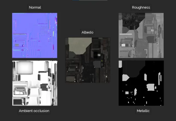 纹理贴图:Diffuse, Specular, Metallic,Normals.AO