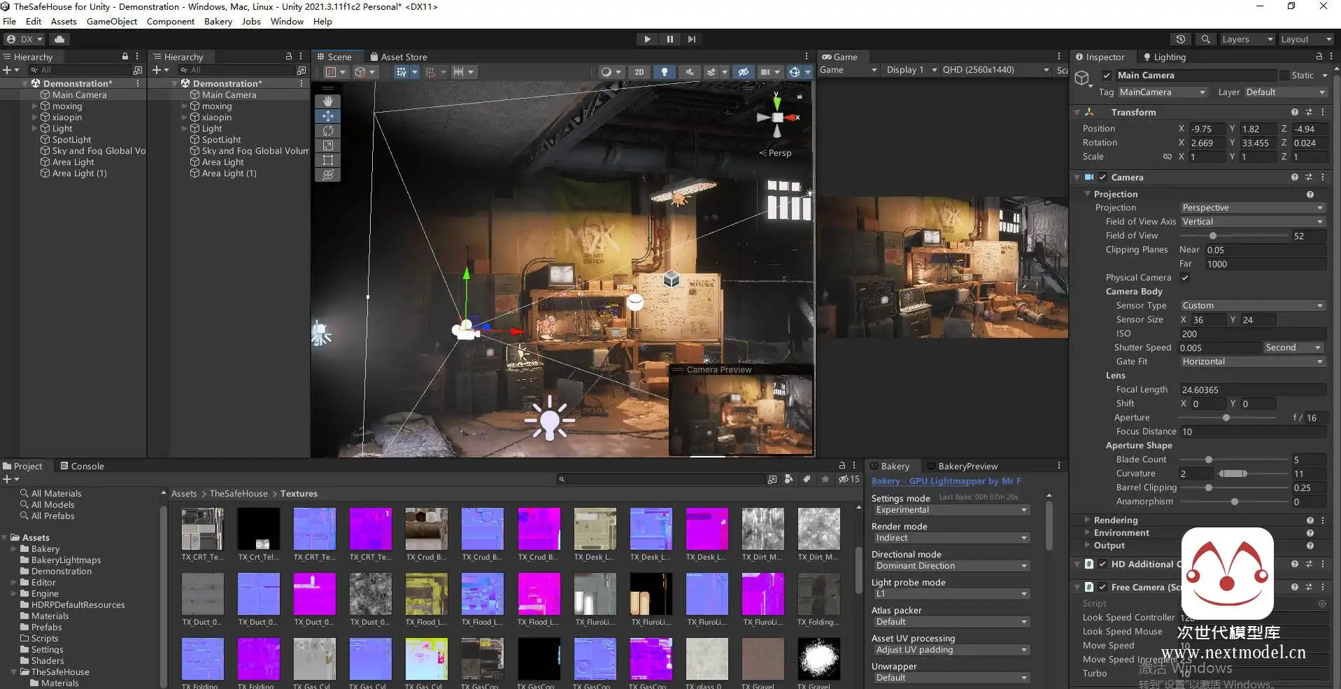 进行了渲染烘焙,最高的lightmap灯光贴图尺寸达到了2048px*2048px。使用工具: