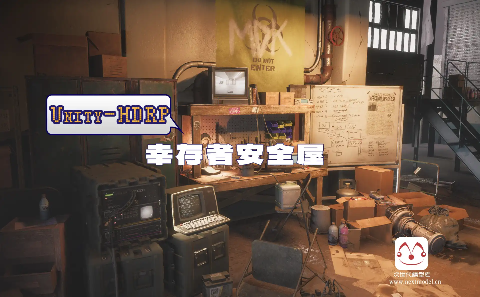 超高品质写实幸存者安全屋地下室场景,在末日环境下的地下生存场景,场景模型拥有超高品质,使用Unity HDRP渲染,对场景进行了烘焙渲染。