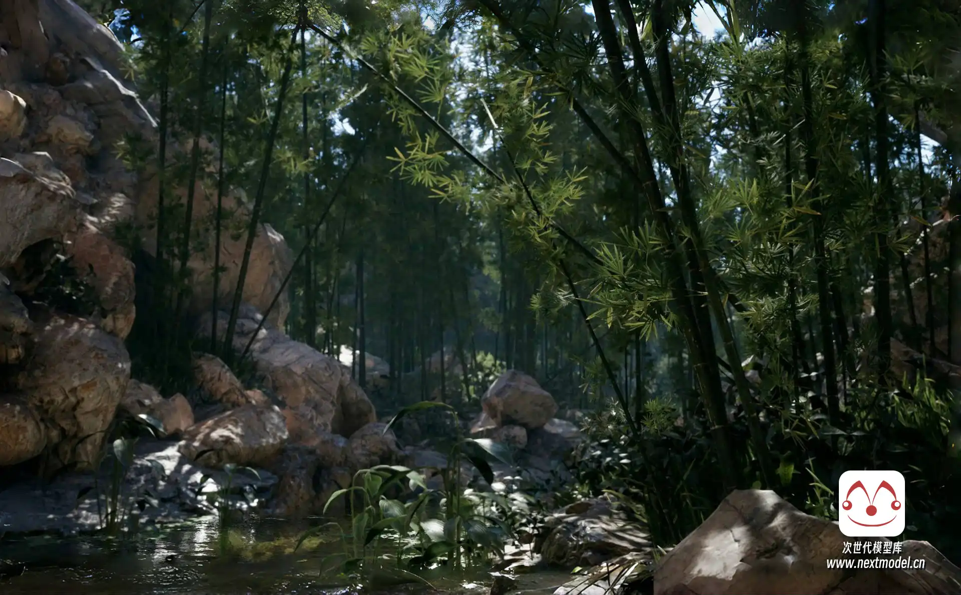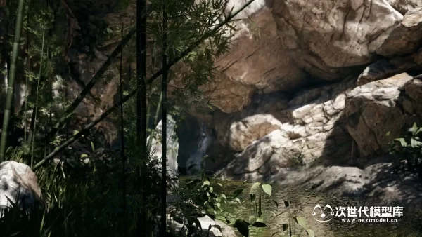 使用摄影测量技术精心制作的中国风小型山谷竹林场景,包括岩石、悬崖和竹林。所有资产均经过PBR校准,适用于构建中国功夫风格的环境。场景虽非大型开放世界地图,但利用了Lightmass静态全局光照,为室内洞穴区域营造出迷人的间接照明效果。