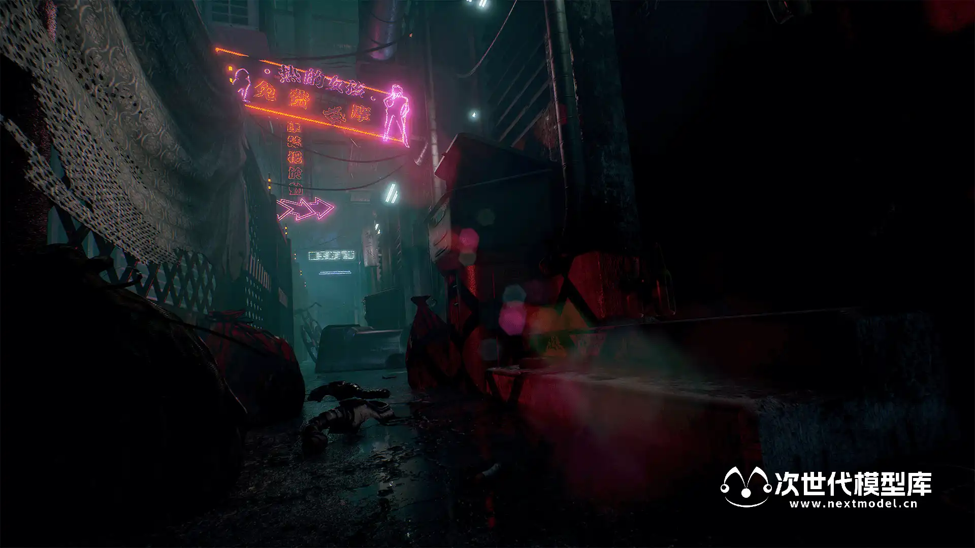 夜色中的近未来香港巷弄,灵感源自现代香港与九龙城寨的历史元素。资产包内含90多种模型,涵盖灯笼、楼梯、卷闸门、2处外景店面以及一些科幻主题元素。特别的是,管道和通风口均使用单一可平铺材质构建。此外,还提供了模拟粗糙墙面、遮阳布、垃圾袋、金属栅格等的可平铺纹理。