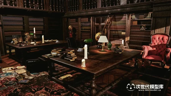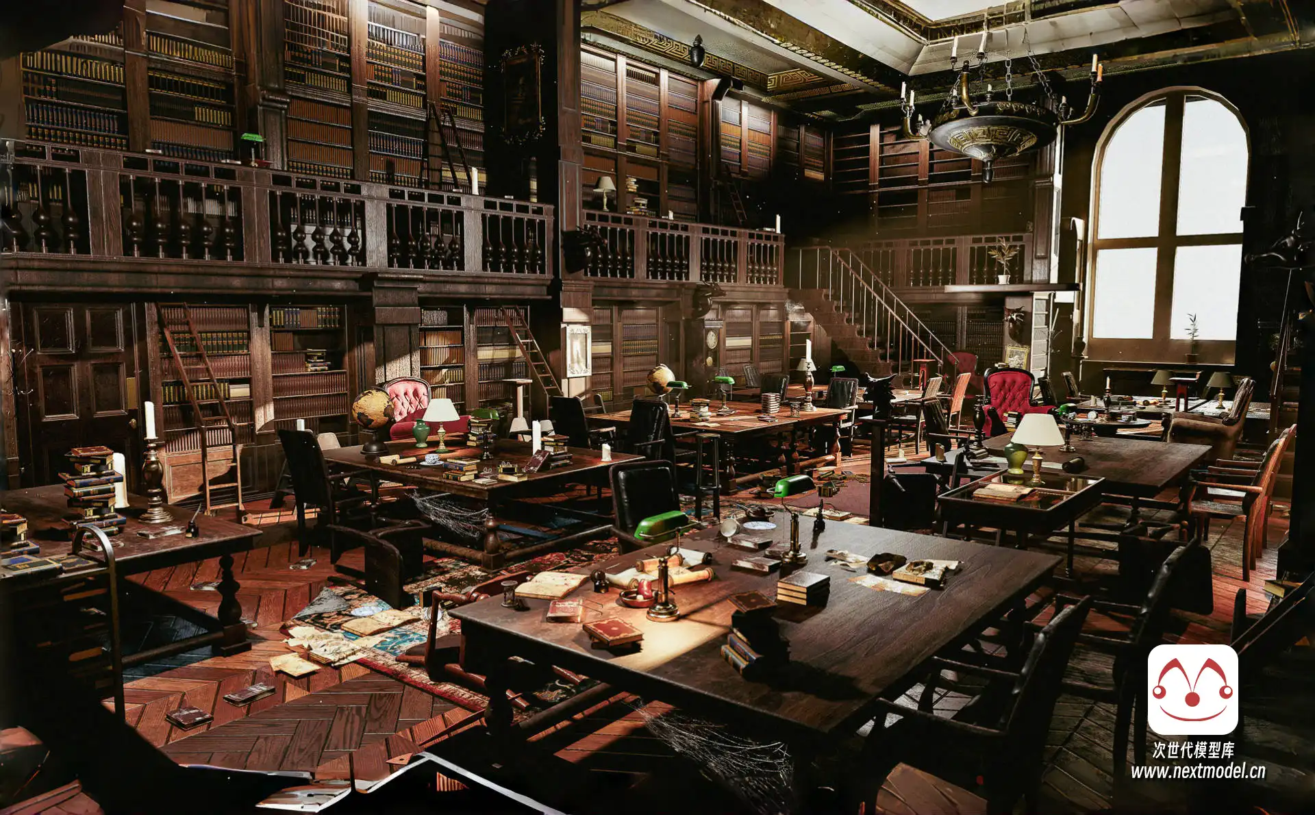 废弃图书馆模型套件【The Abandoned Library】,集成了超过80个精心制作的模型,从书架到家具,再到各种装饰品,辅以逼真的粒子效果,如火/烟、蜡烛火焰、灰尘等,为游戏和虚拟世界设计师提供了一个完整的图书馆环境设计解决方案。模型套件不仅美观,而且实用,支持材质实例中的可控参数,让设计师能够自由调整模型外观,实现多样化的设计风格。无论是营造神秘氛围还是构建历史场景,这套模型都能满足您的需求,成为您项目中的亮点。 模型信息 废弃图书馆模型套件包含超过80个高精度模型,如扶手栏杆、书架集合、书籍集合、蜡烛集合、烛台、椅子集合、吊灯、时钟集合(其中一款为实时显示当地时间的老爷钟)、衣帽架、茶杯碟、门、家具集合(桌椅、立柱、基座、书架、架子等)、壁炉、幽灵、地球仪、沙漏、墨水瓶与羽毛笔、钥匙、梯子集合、灯罩集合、放大镜、碟仙板、纸张集合、画框、烟斗、植物、地毯集合、卷轴、雕塑、眼镜、楼梯、手推车、花瓶等。此外,还包含多种贴花和粒子效果,如火/烟、蜡烛火焰、灰尘、蜘蛛网、污渍和飞溅效果。