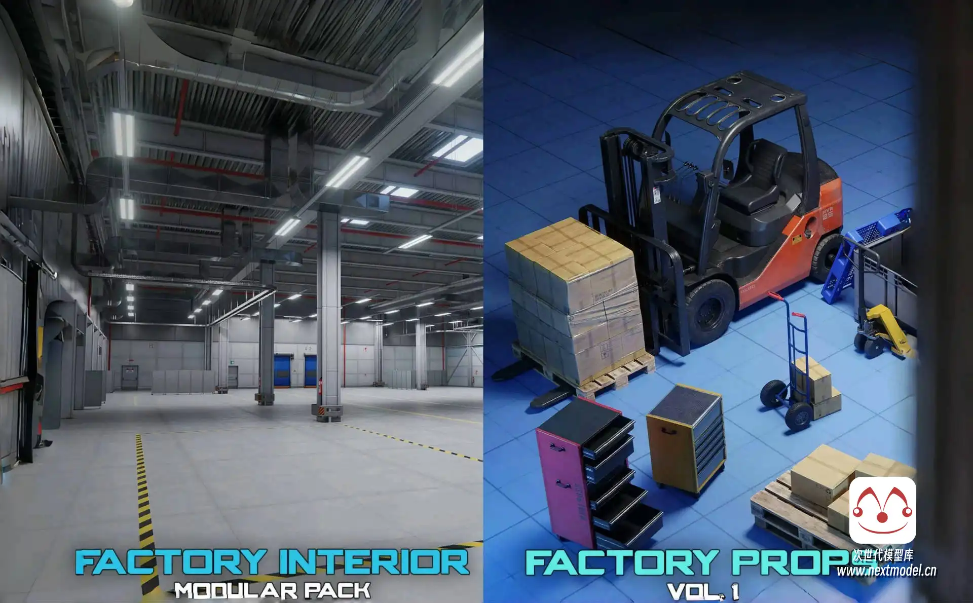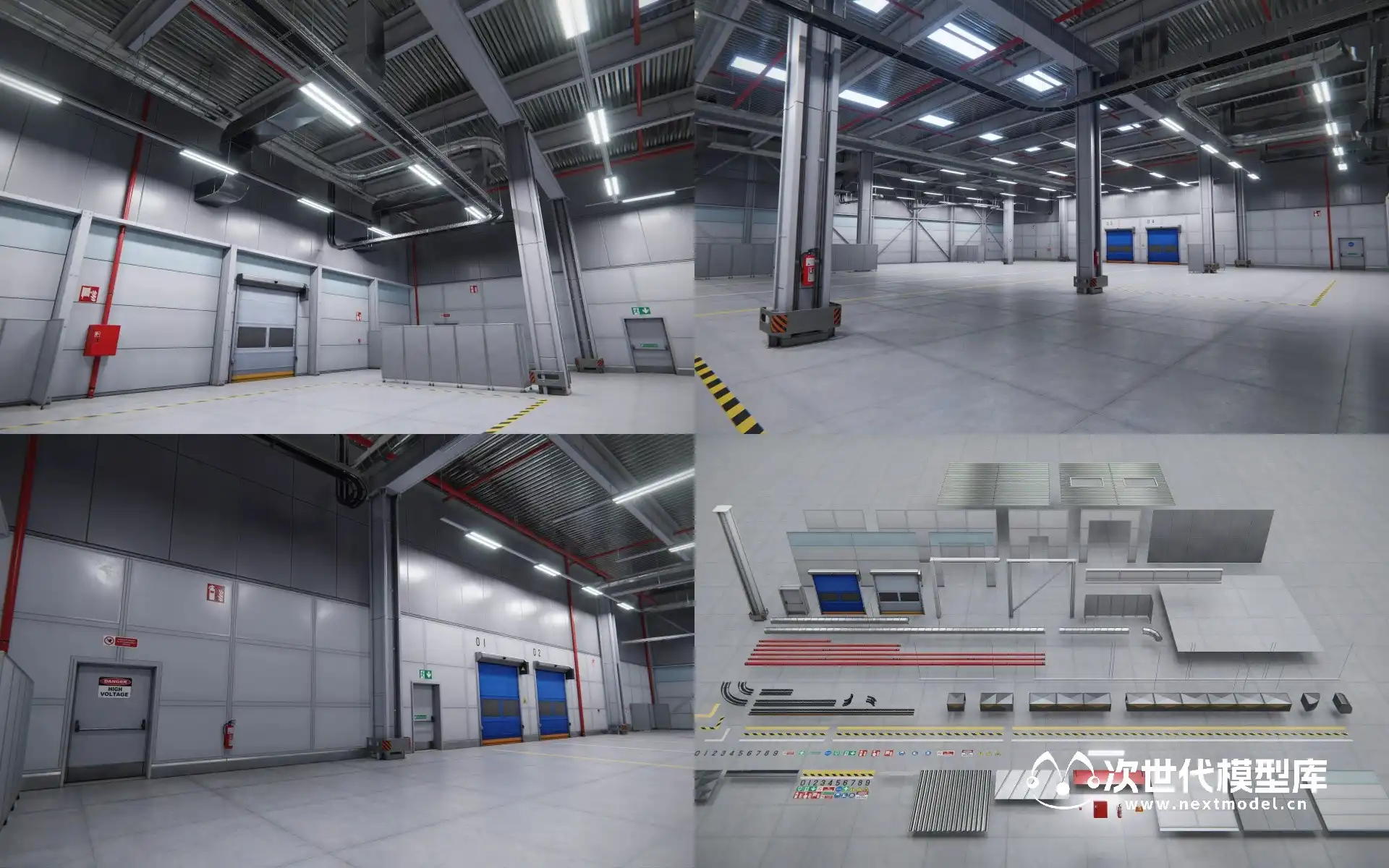 - 包含140个模块化网格和143个预制件,可以组合成工厂或仓库内部场景。