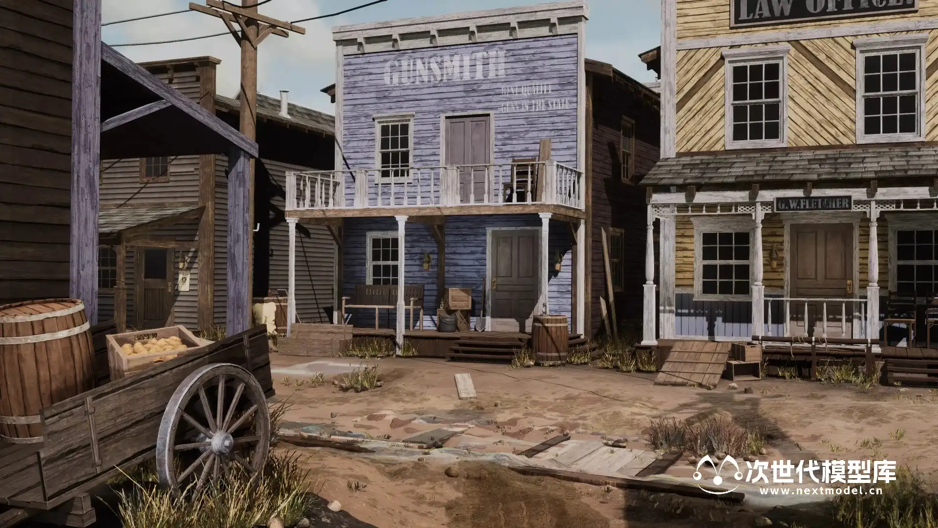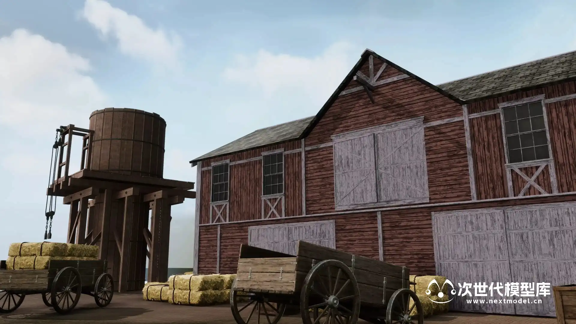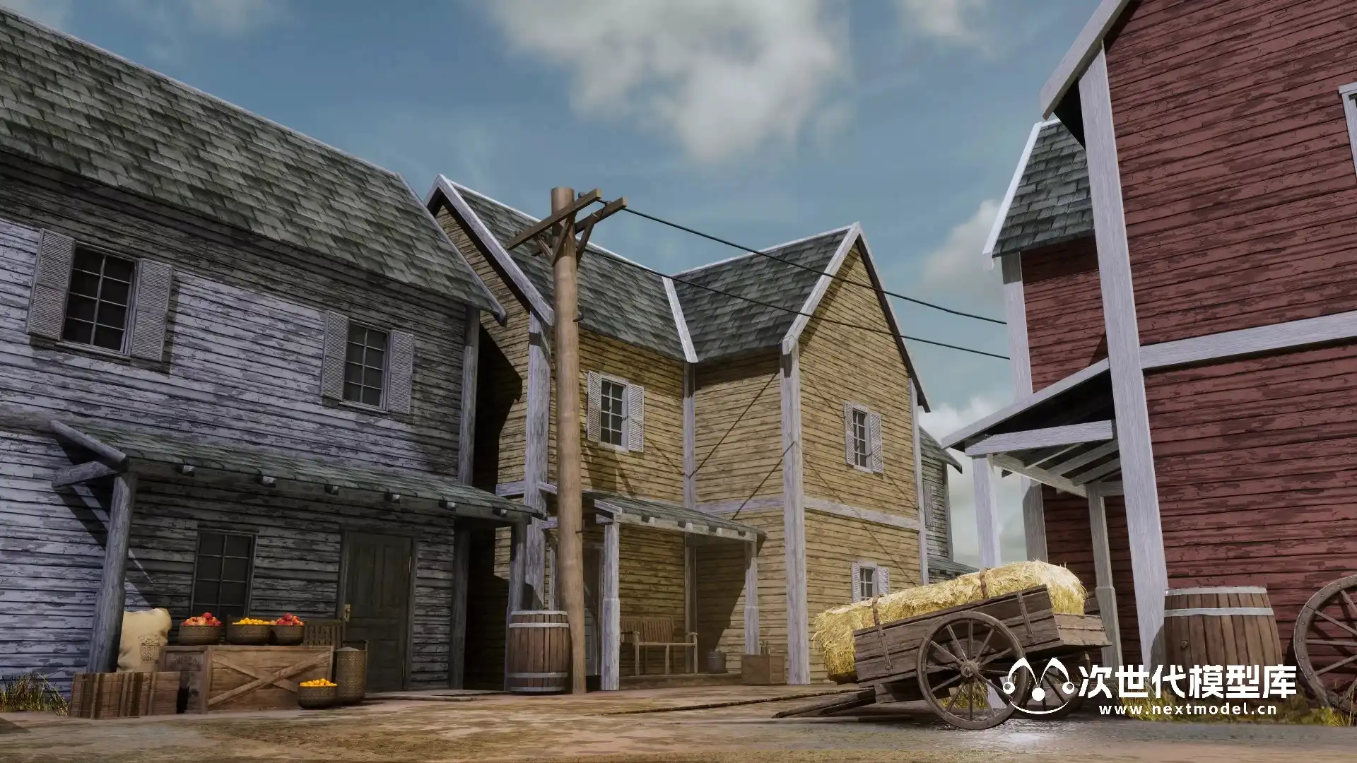 - 包含大约10栋建筑,包括商店、住宅建筑和农场建筑。
