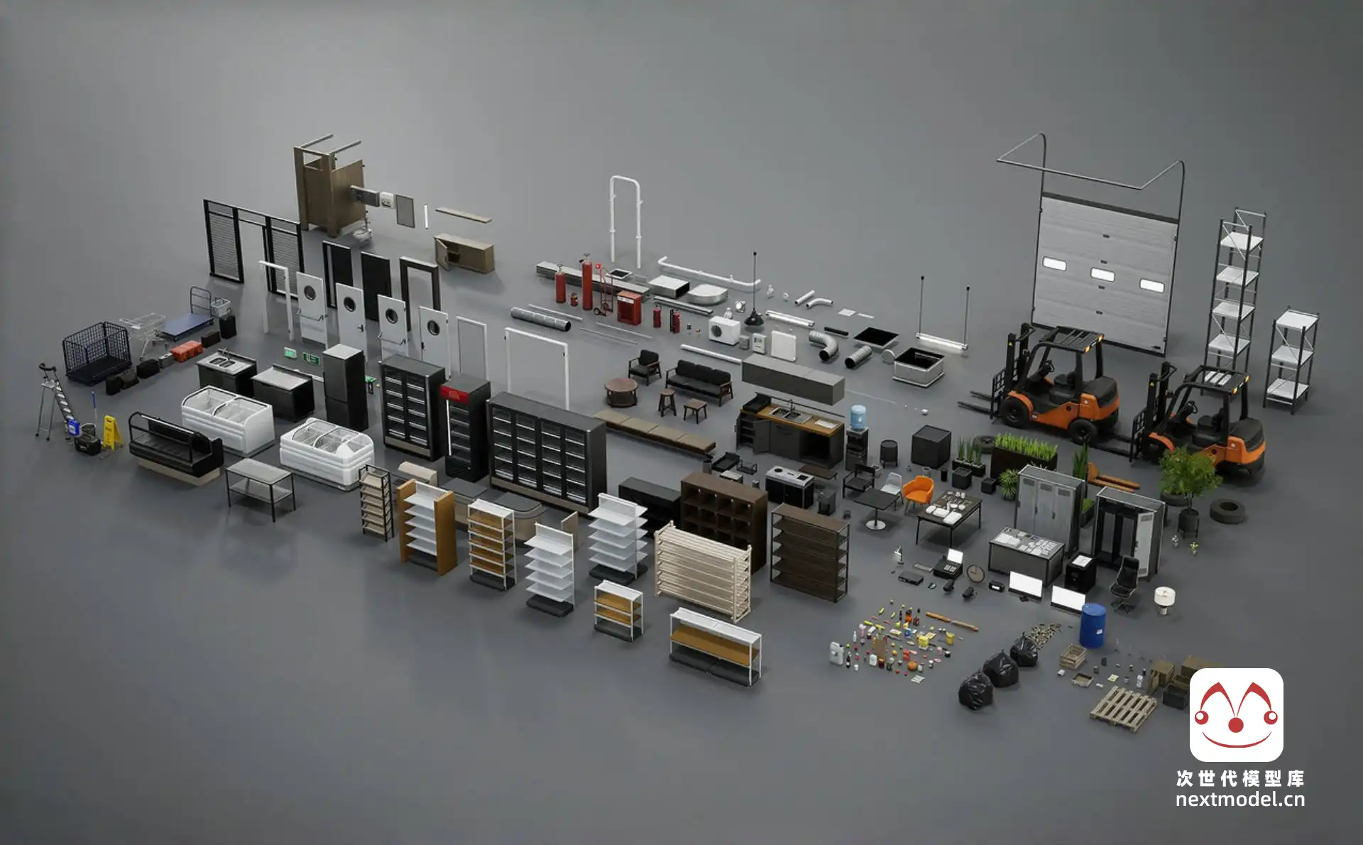 - 丰富的模型种类:包含429个独特的网格,涵盖超市环境中常见的各种道具。
