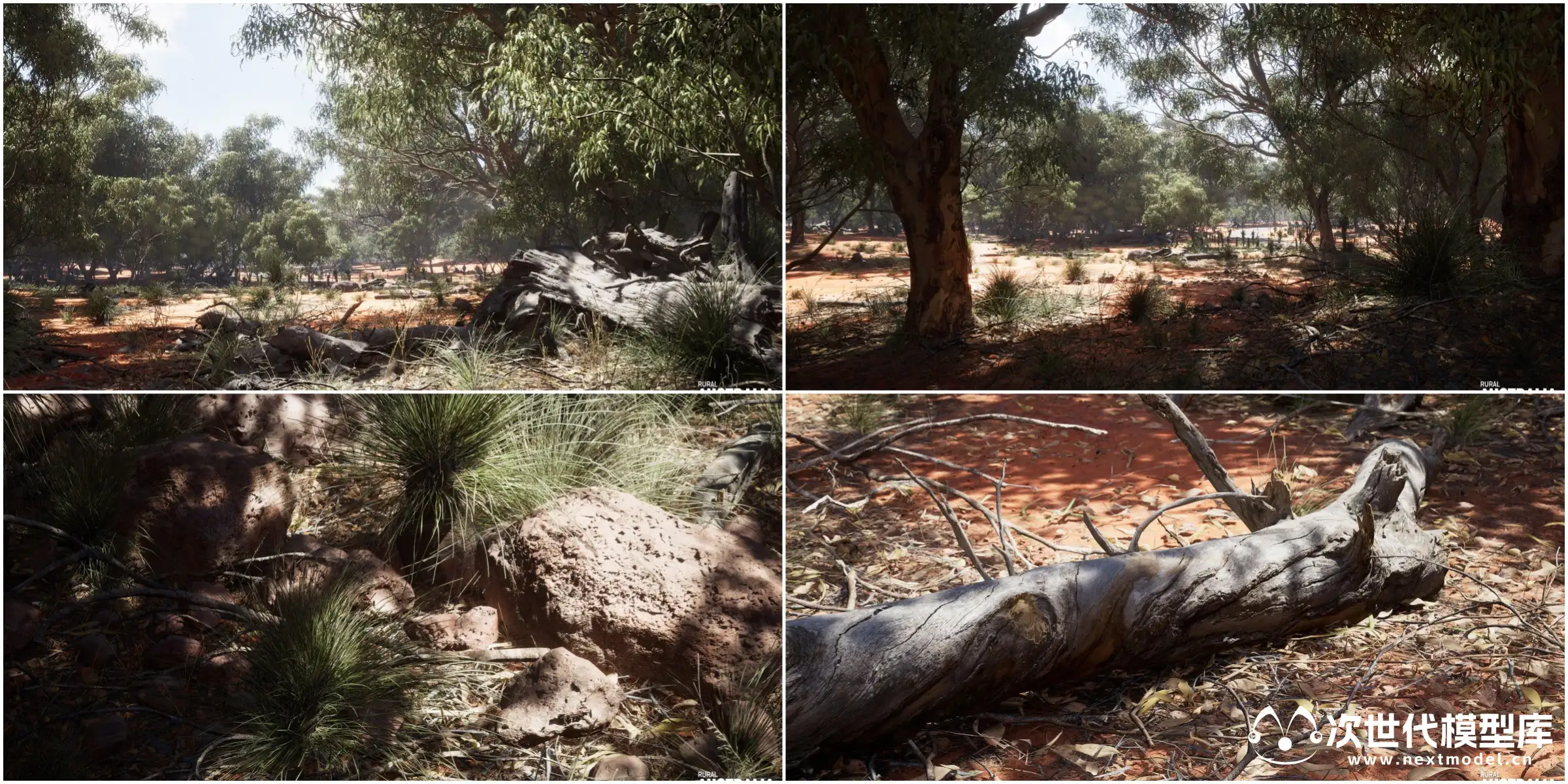澳大利亚乡村是一个高品质、经过优化的、基于摄影测绘的内容包,在澳大利亚实地取材。该内容包含有一系列逼真的树木、岩墙等,能让你构建出优美而准确的澳大利亚乡村小路及偏远河谷。所有内容都根据标准视频游戏规格进行了优化,具有LOD,简化的着色器,且无需高开销的解决方案或功能就能达到极高的视觉逼真度——适合用于游戏、虚拟制片或其他实时应用。