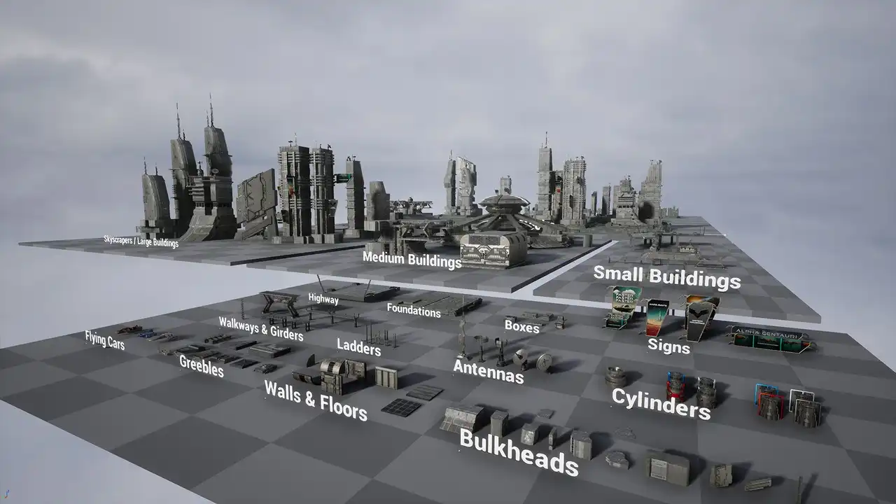 - 独特的TrimSheet纹理,包含丰富的科幻细节。
