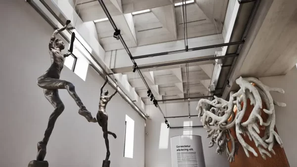 - 尖端艺术展览场景:墙壁上装饰着色彩斑斓的画作,并包含许多当代装置和雕塑。