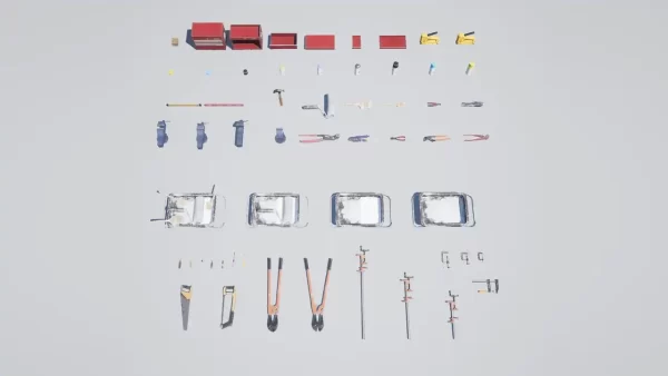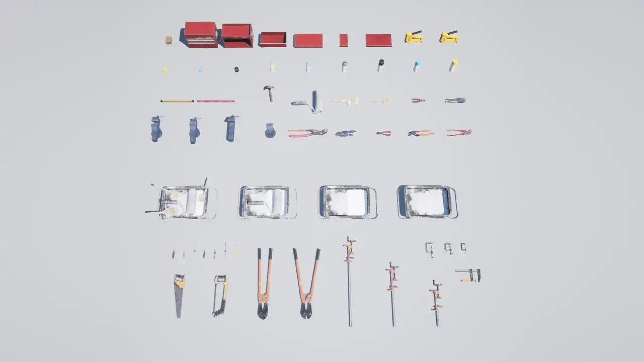 Toolshed Garage Props VOL.1 是一款专为虚幻引擎设计的高质量车库道具资源包,特别适合用于创建逼真的AAA级视觉效果。这个资源包内含58个精心制作的网格模型,每个模型都具有高度细节,并从各个角度进行了完整建模。此外,资源包还提供了一系列高分辨率纹理(大多数为2048像素以上),以及一个主材质设置,允许用户轻松控制粗糙度、反照率、法线等属性。所有资产都经过优化,既适合游戏开发,也适合建筑可视化项目。