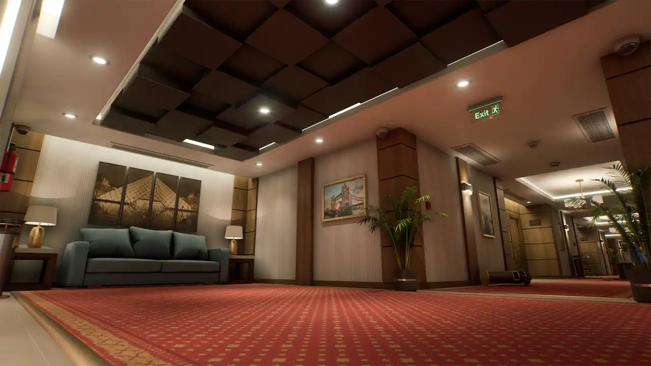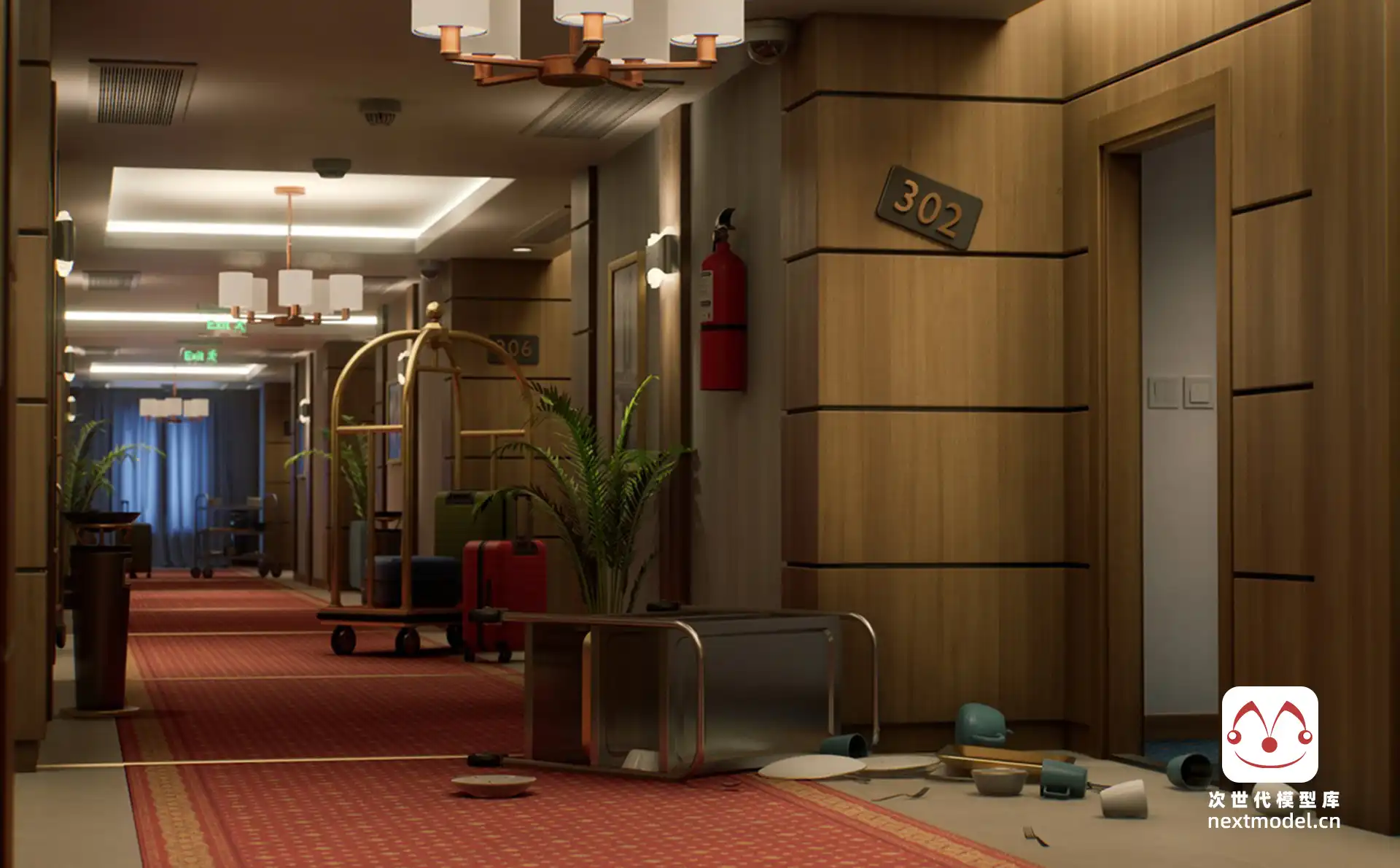 - 适合原因:逼真的酒店走廊环境可以增强恐怖氛围,适合用于恐怖生存游戏中的探索场景。