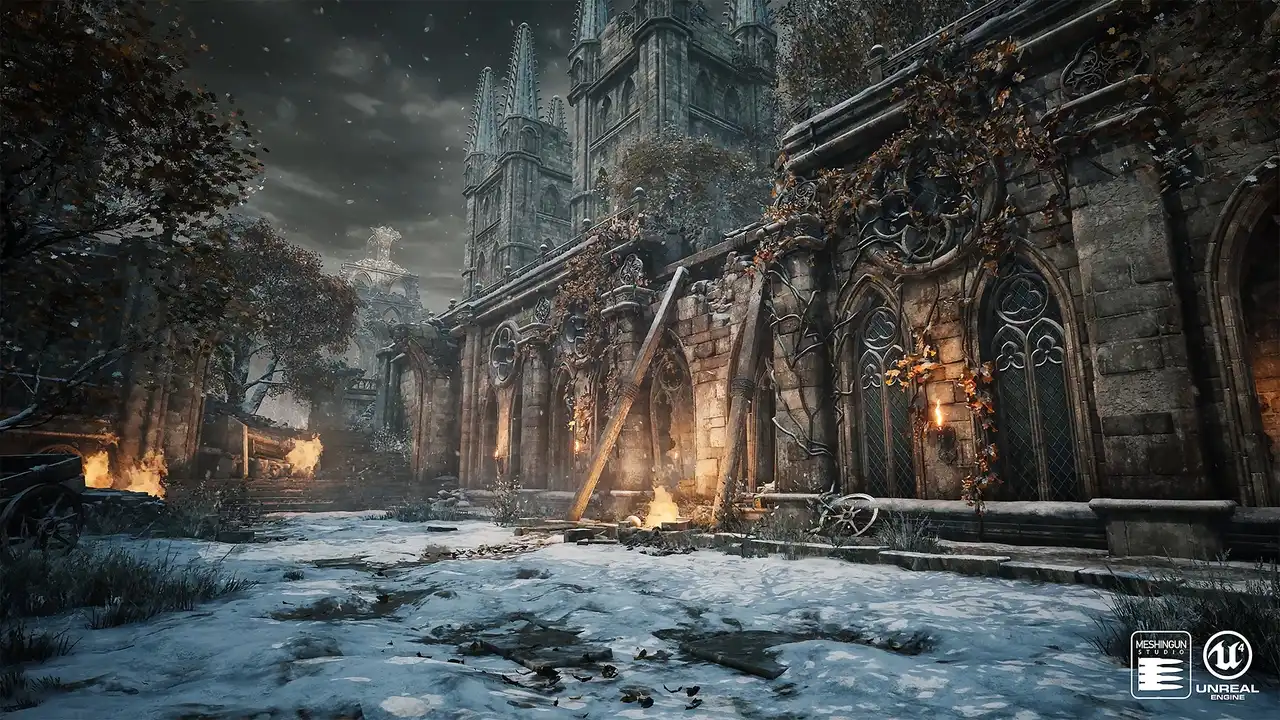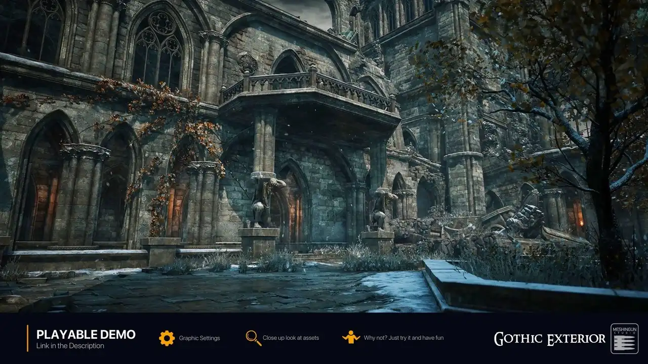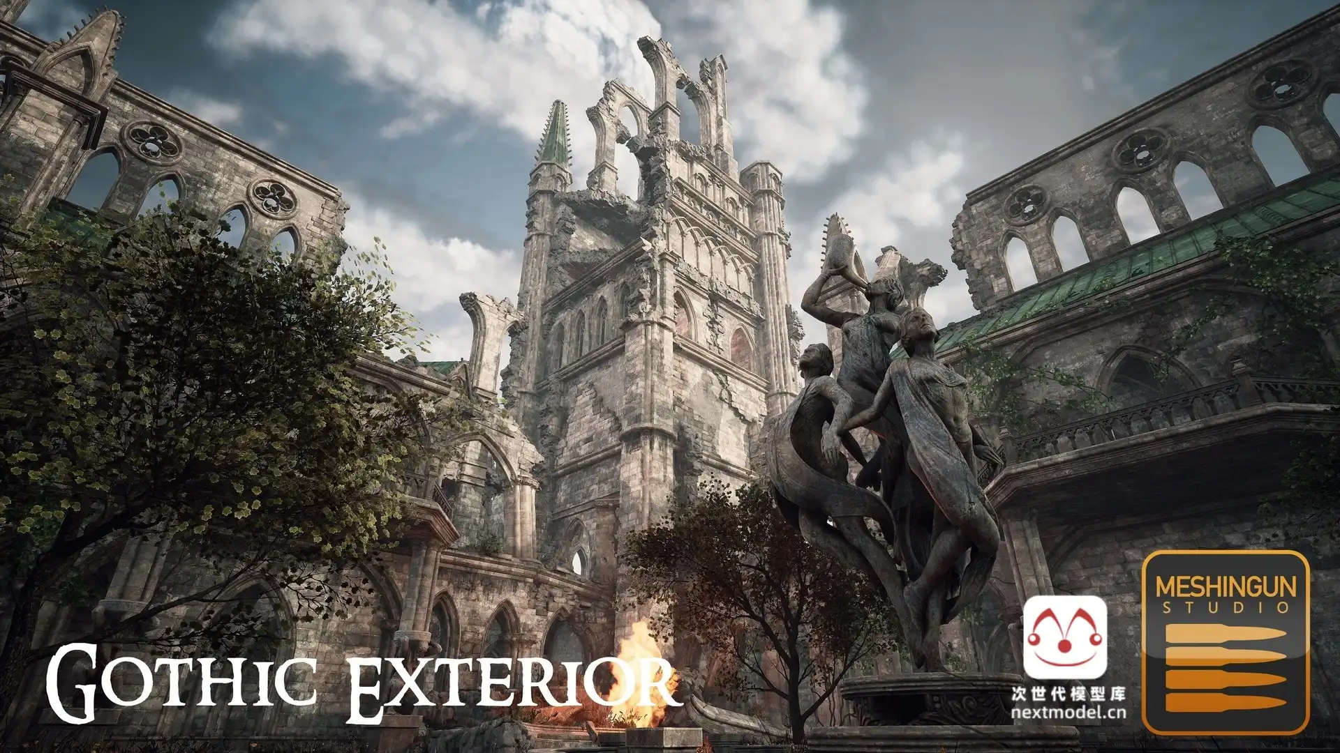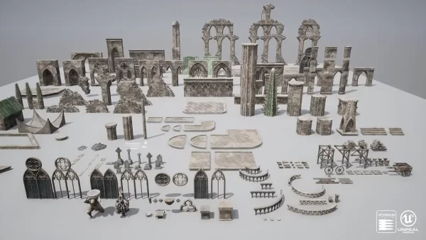 哥特式外部环境模型包(Gothic Exterior Megapack)是一款专为虚幻引擎设计的高质量资源包,专注于模块化和可定制性,为用户提供广泛的场景构建选择。该资源包包含310个独立模块化资产,涵盖建筑模块、道具和植被,所有资产均支持网格对齐,便于快速组装。